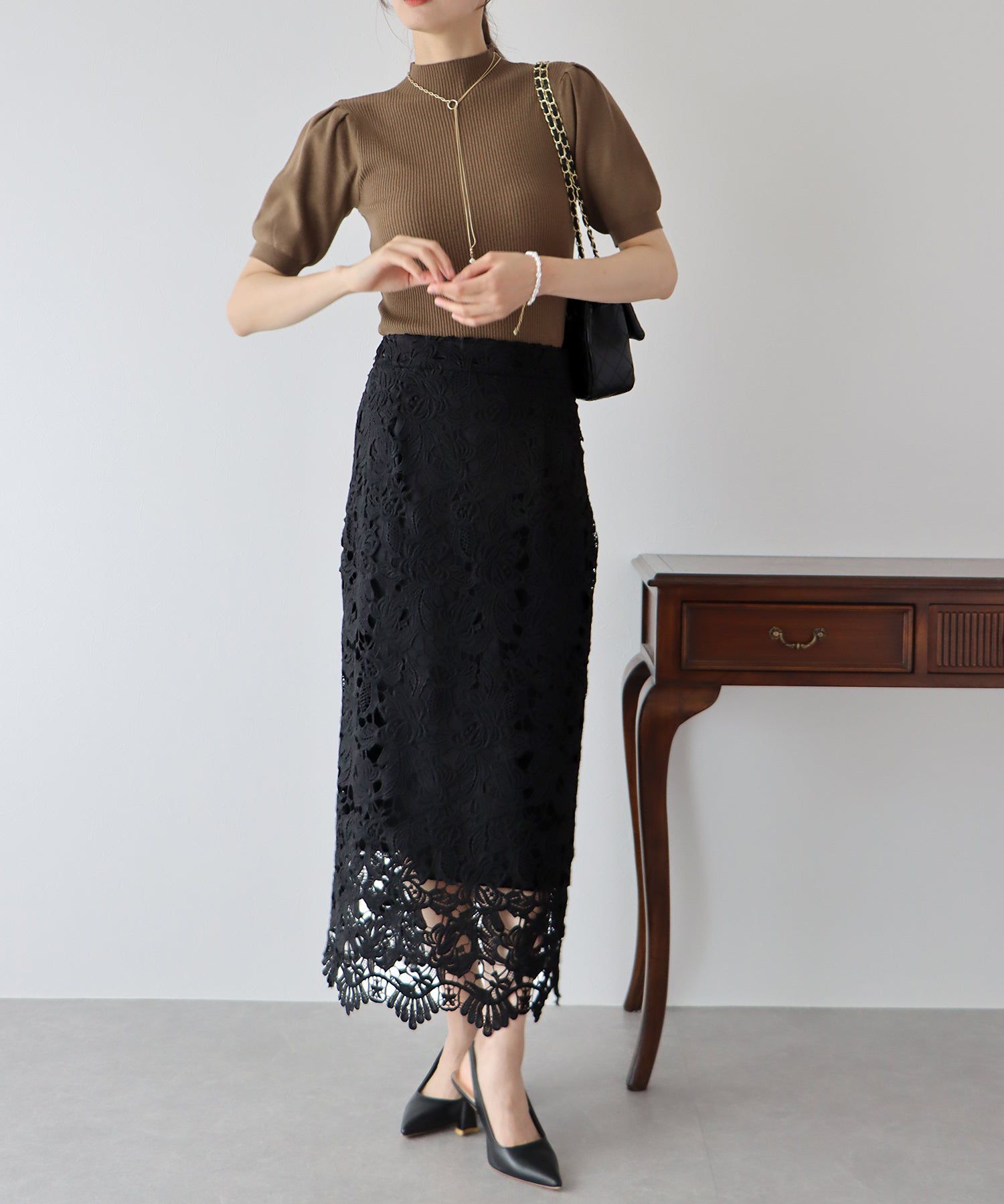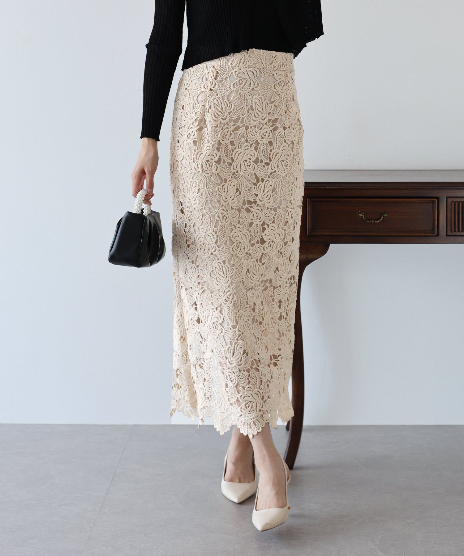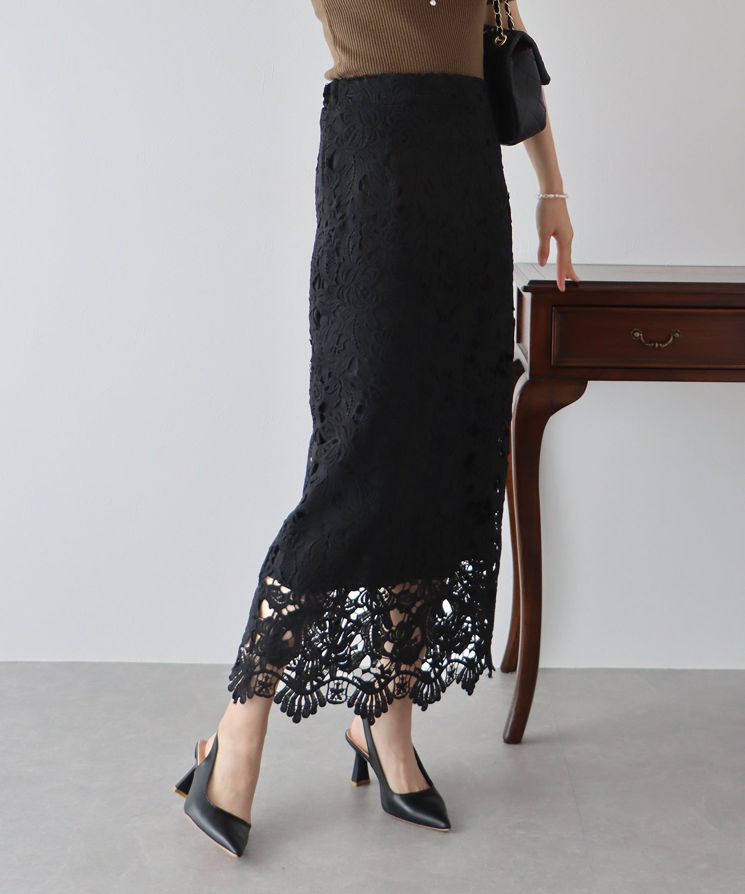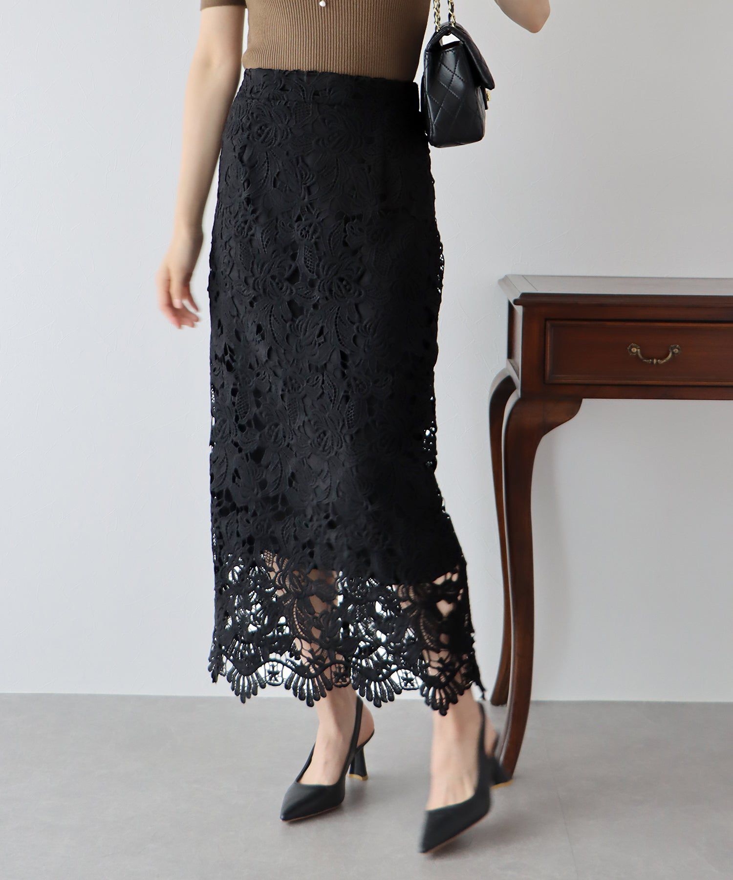 • 品名:高雅蕾絲雕花鉛筆窄裙