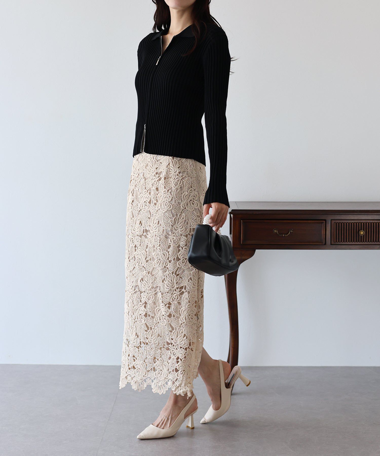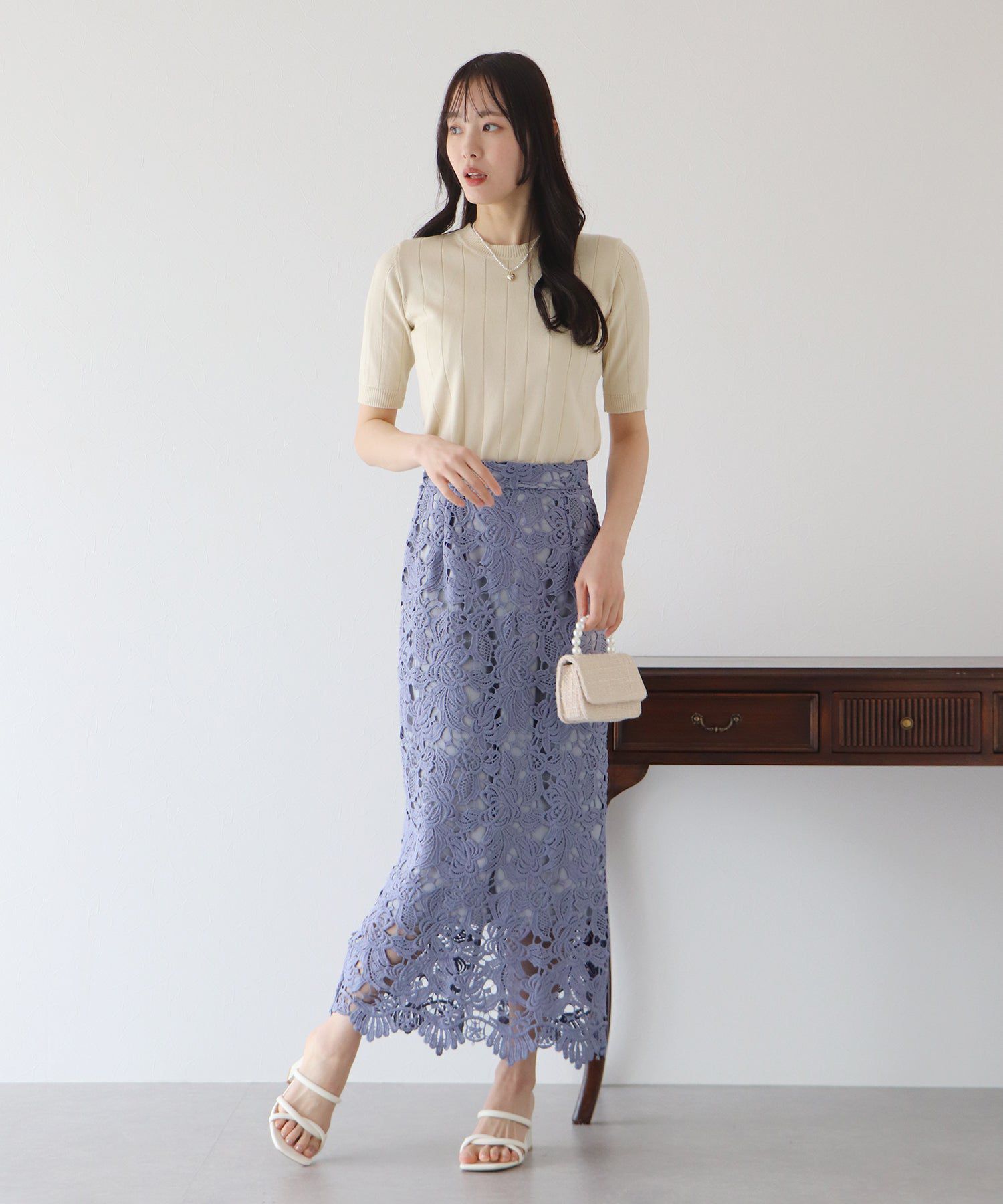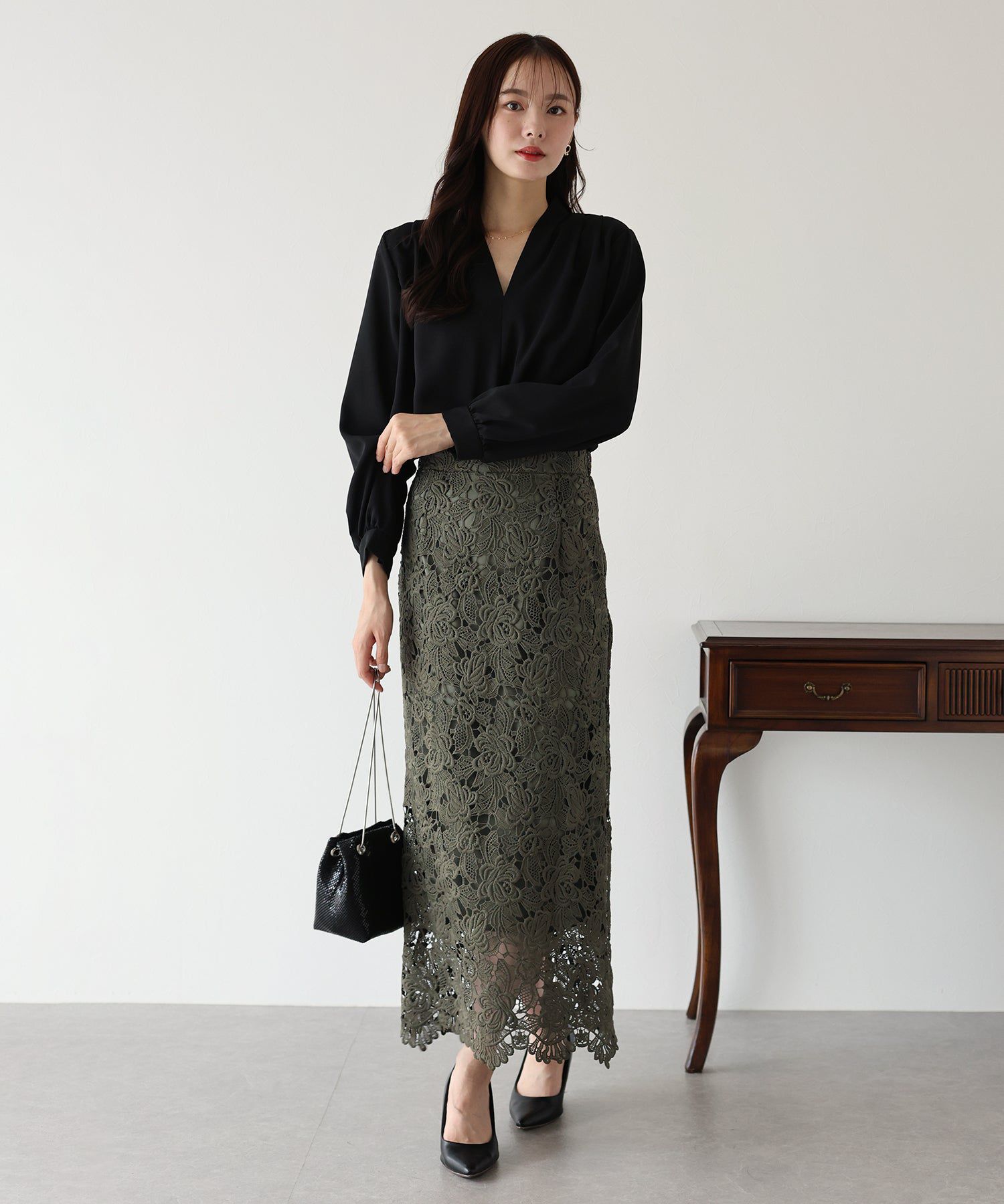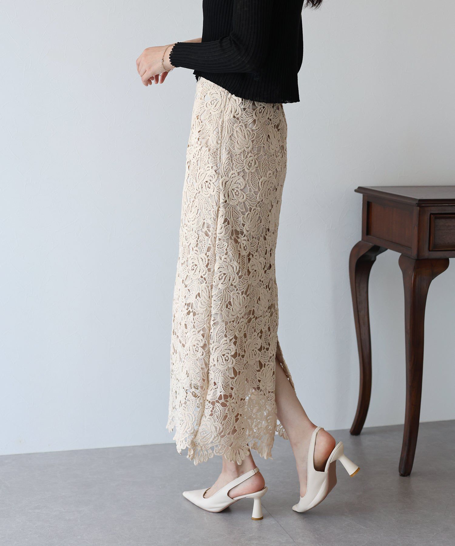 • 品名:高雅蕾絲雕花鉛筆窄裙