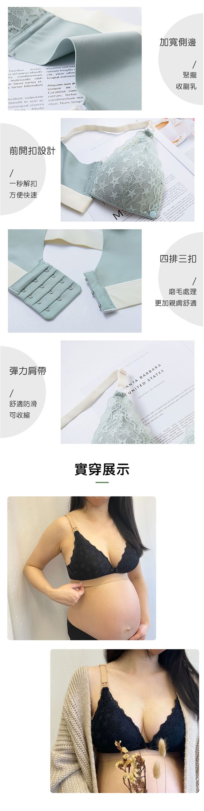 3.加寬側邊設計,收副乳不下垂;前開扣一秒解扣方便快速
