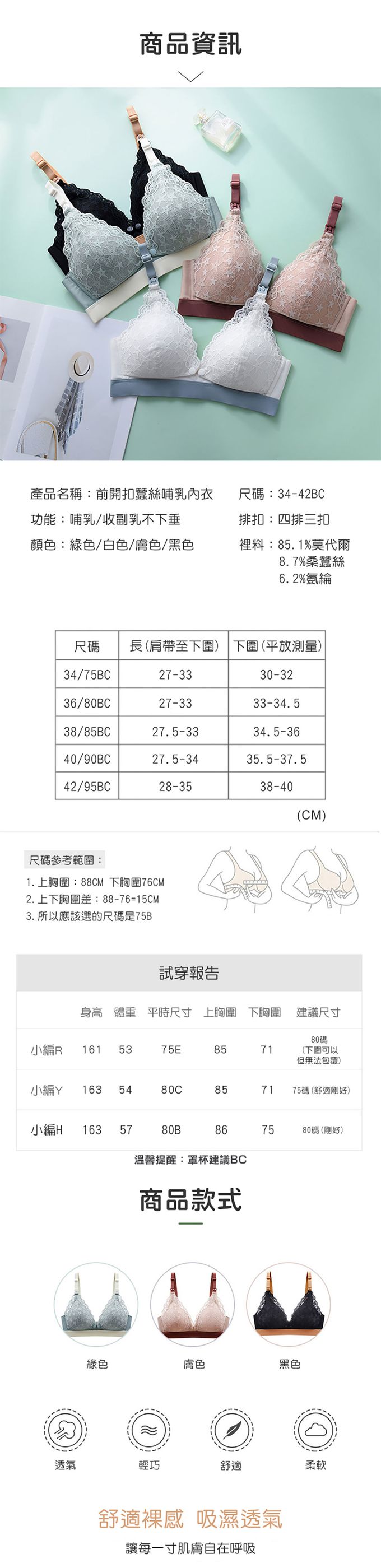 【商品尺寸】34/75、36/80、38/85、40/90、42/95(罩杯均碼落B-C左右)