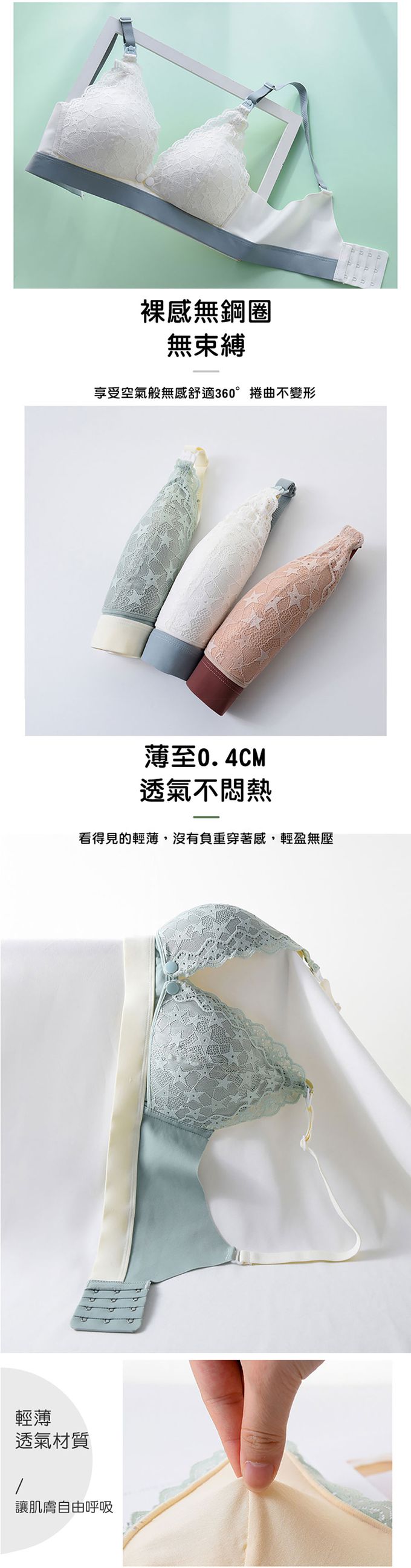 2.蠶絲裡料,透氣舒適柔軟不悶熱;裸感無鋼圈設計無束縛