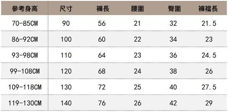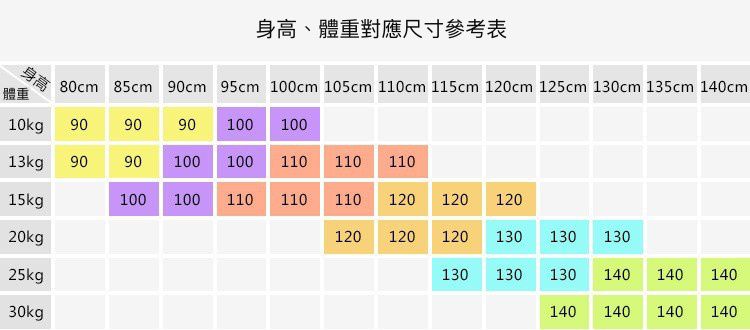 90cm、100cm、110cm、120cm、130cm、140cm