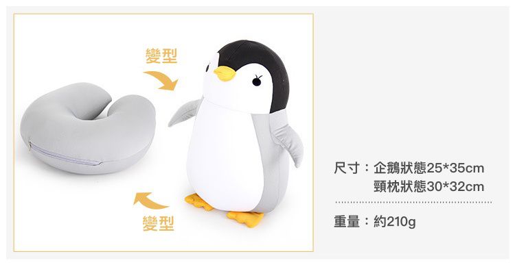 可愛二合一變型頸枕-企鵝,很方便可以當玩偶抱著睡覺時可以當枕頭