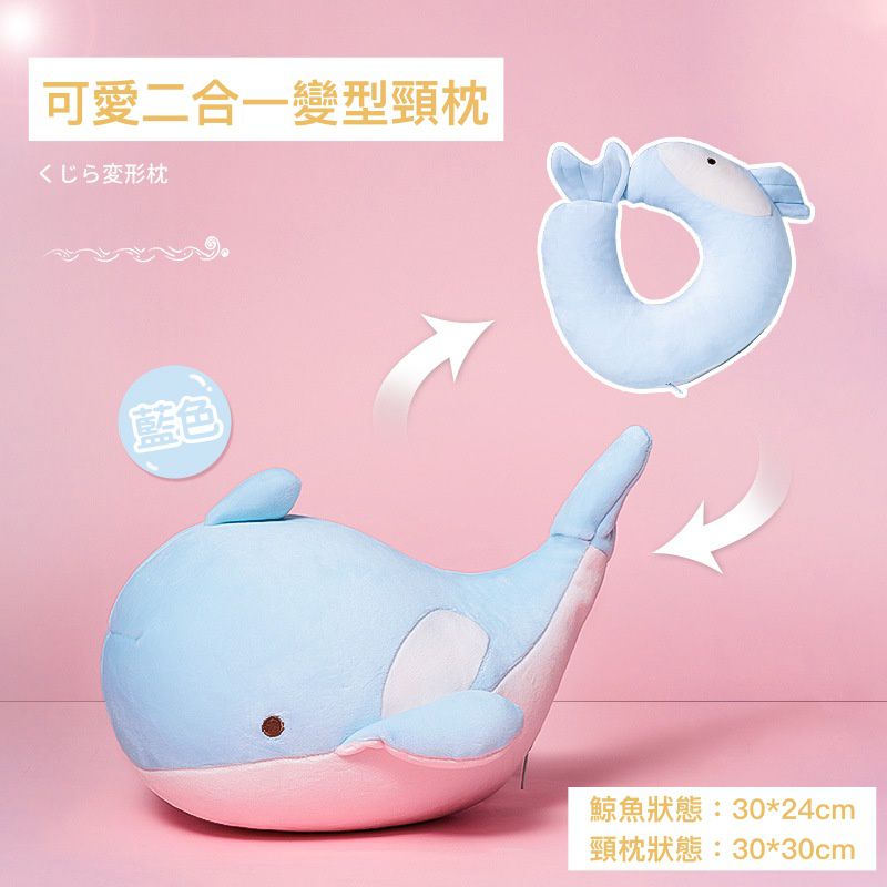 可愛二合一變型頸枕-鯨魚-藍色
