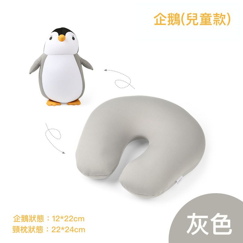 可愛二合一變型頸枕-企鵝(兒童款)-灰色