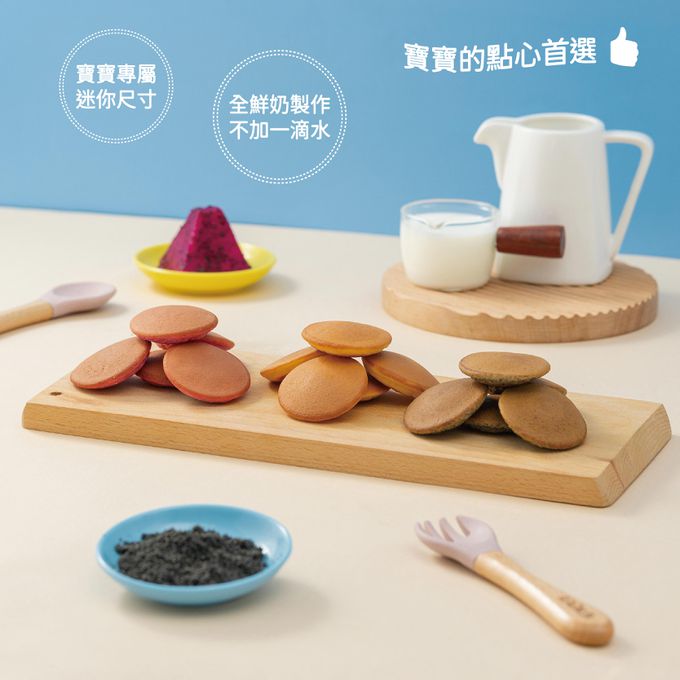 寶寶鮮奶鬆餅(綜合18片)|3種口味-火龍果鮮奶+原味鮮奶+芝麻鮮奶-(1歲以上)