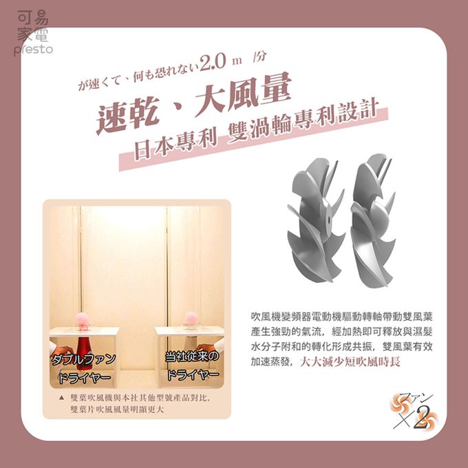 特殊雙渦輪風扇設計,大幅縮短乾髮時間