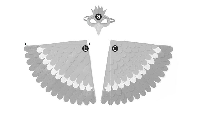 面具尺寸表由上而下為:尺寸、寬度、建議年齡