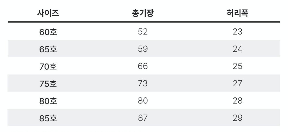 褲子尺寸表由左而右為:尺寸、褲長、腰寬
