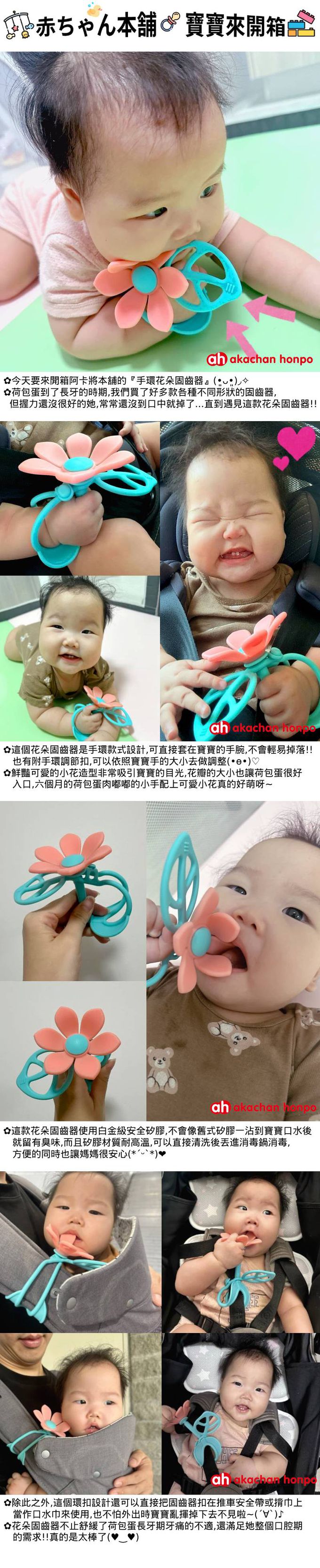 可以套在手腕上讓小寶寶咬,因此不用擔心手的握力還不夠的小寶寶會弄掉且更衛生。