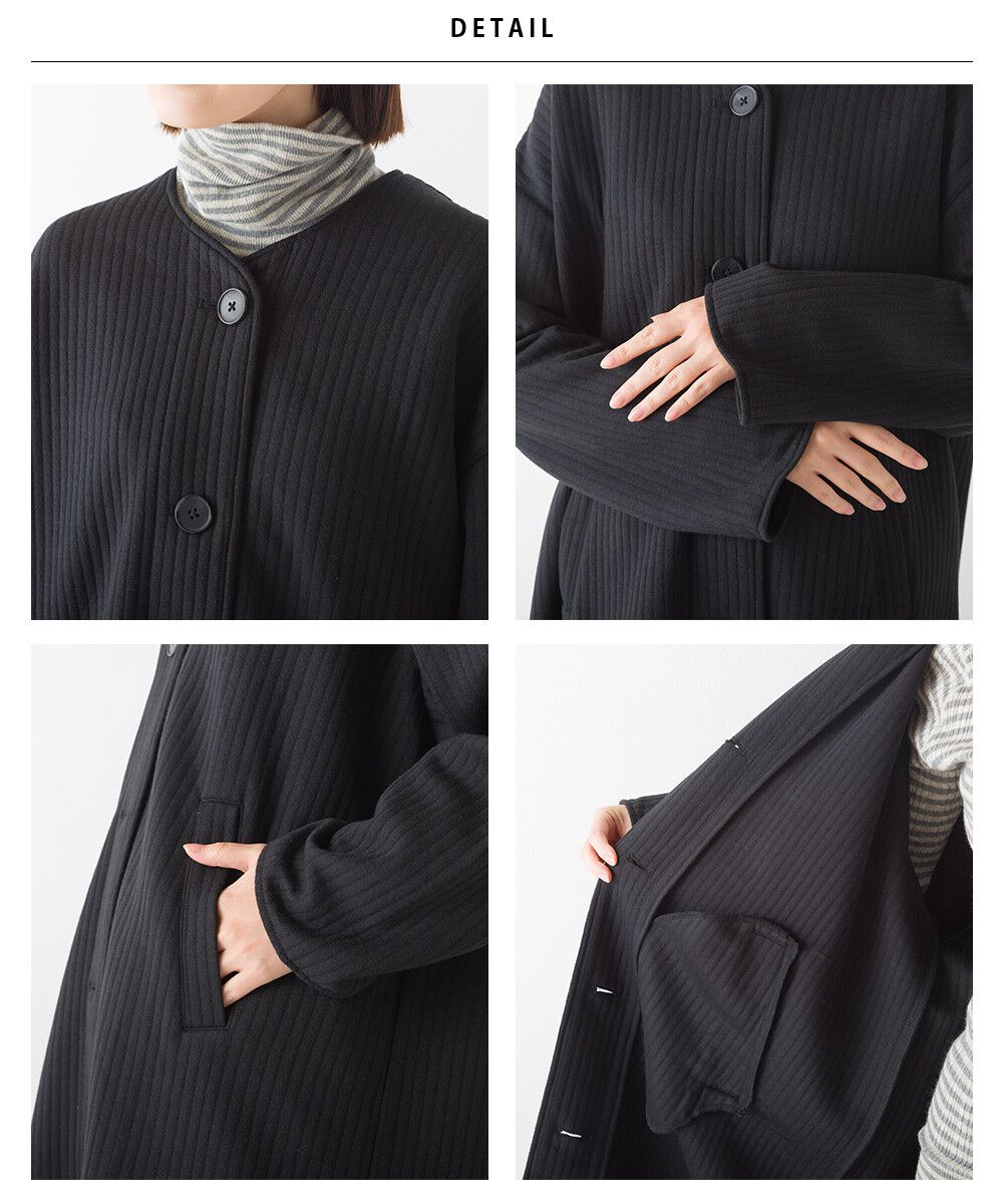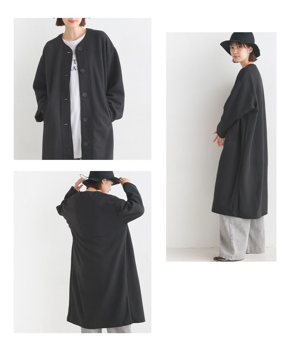 日本 OMNES - 圓領直絎縫修身長版大衣/外套-簡約黑