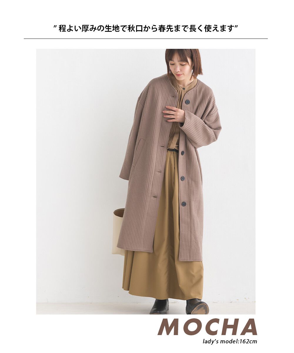 日本 OMNES - 圓領直絎縫修身長版大衣/外套-摩卡棕
