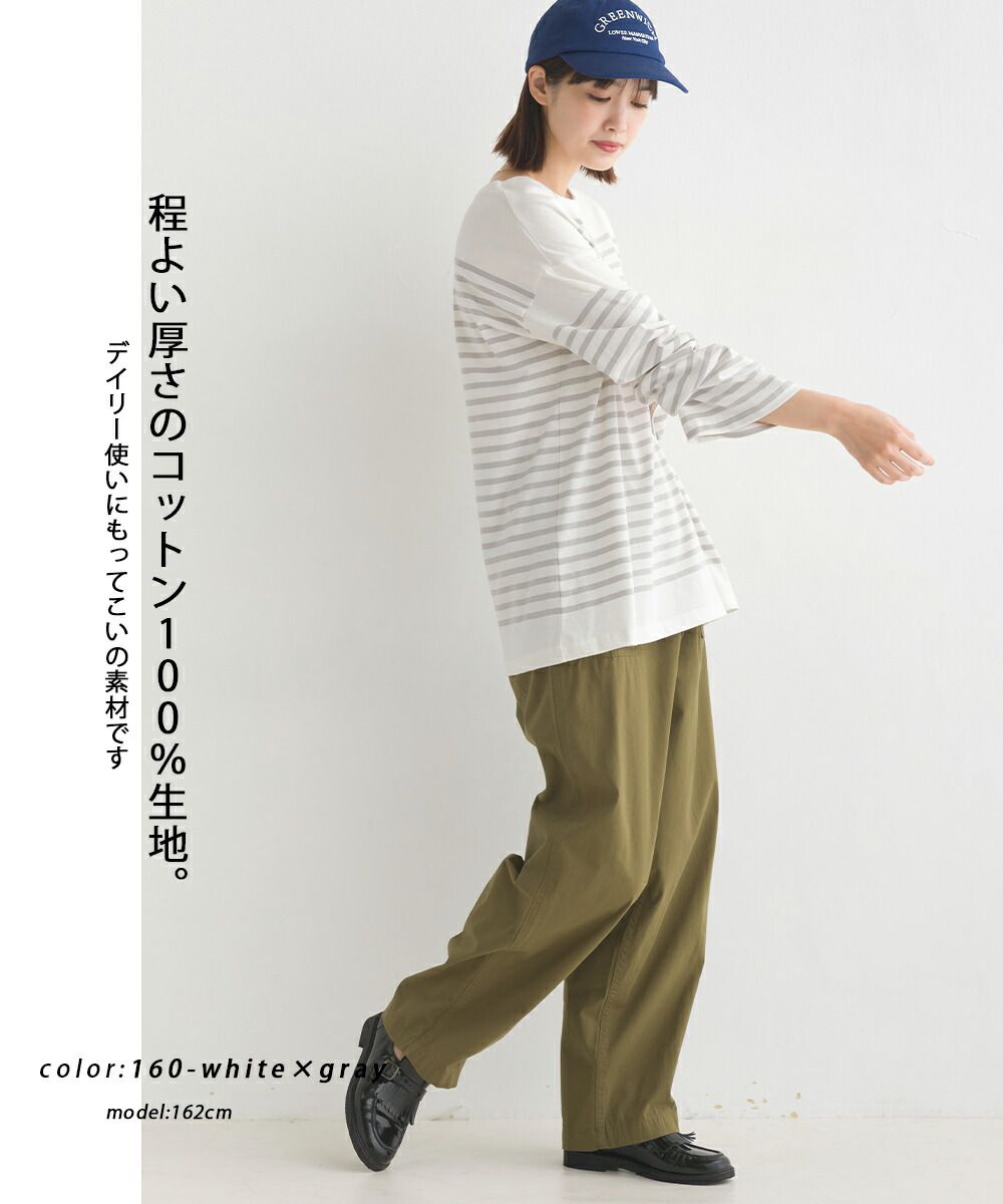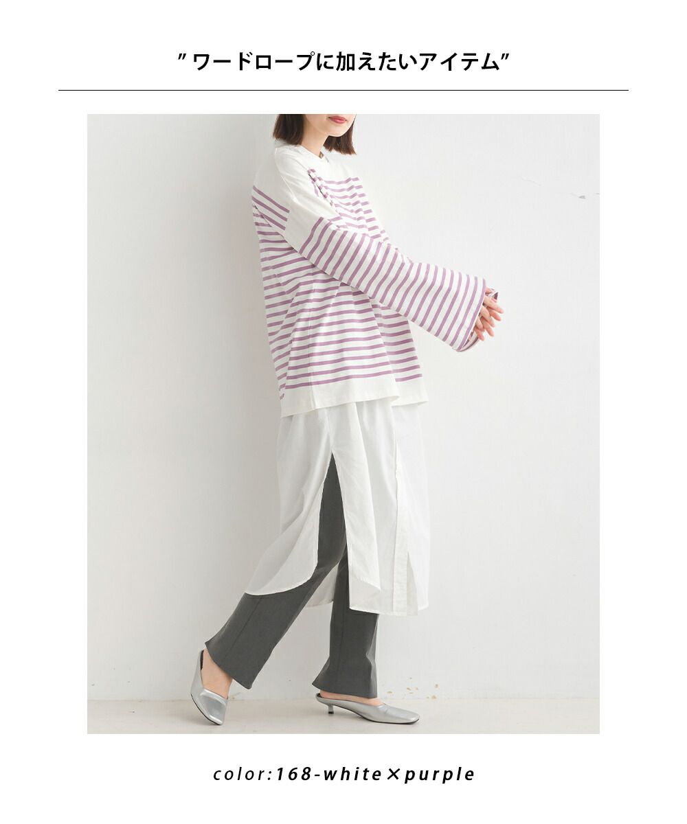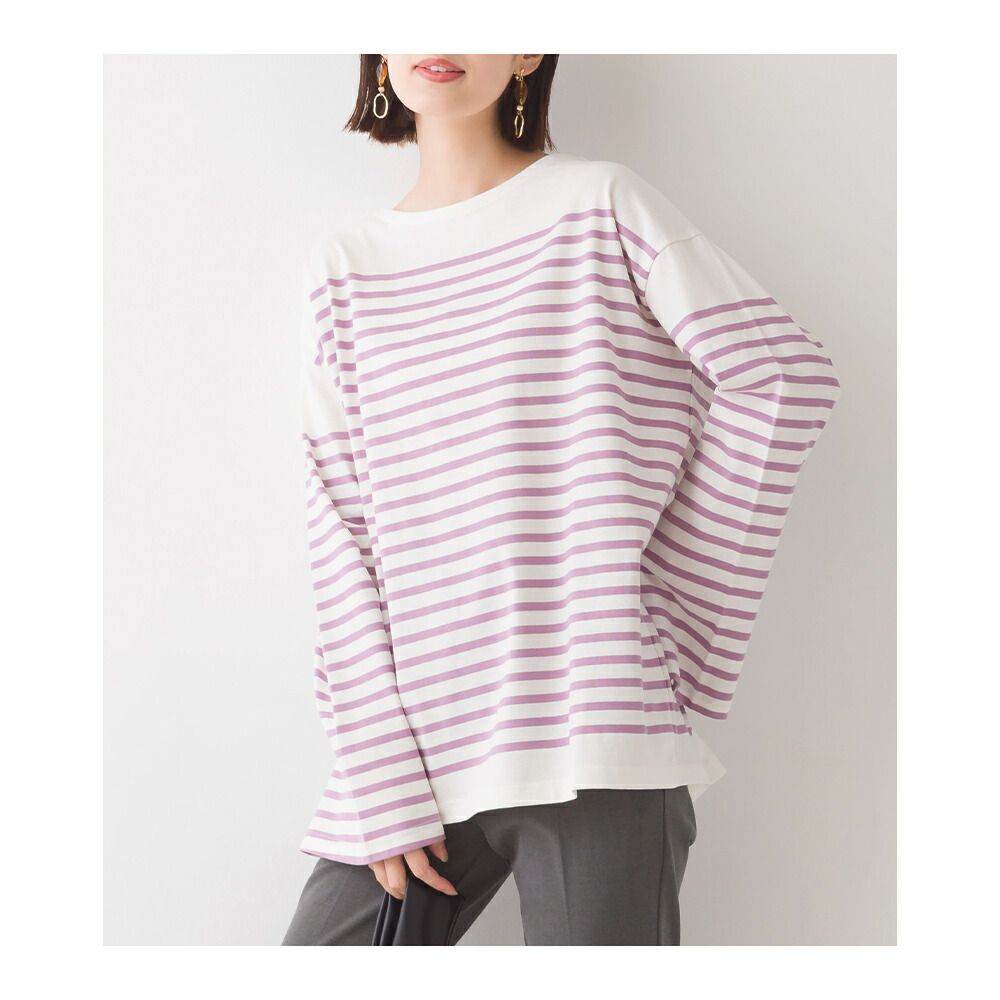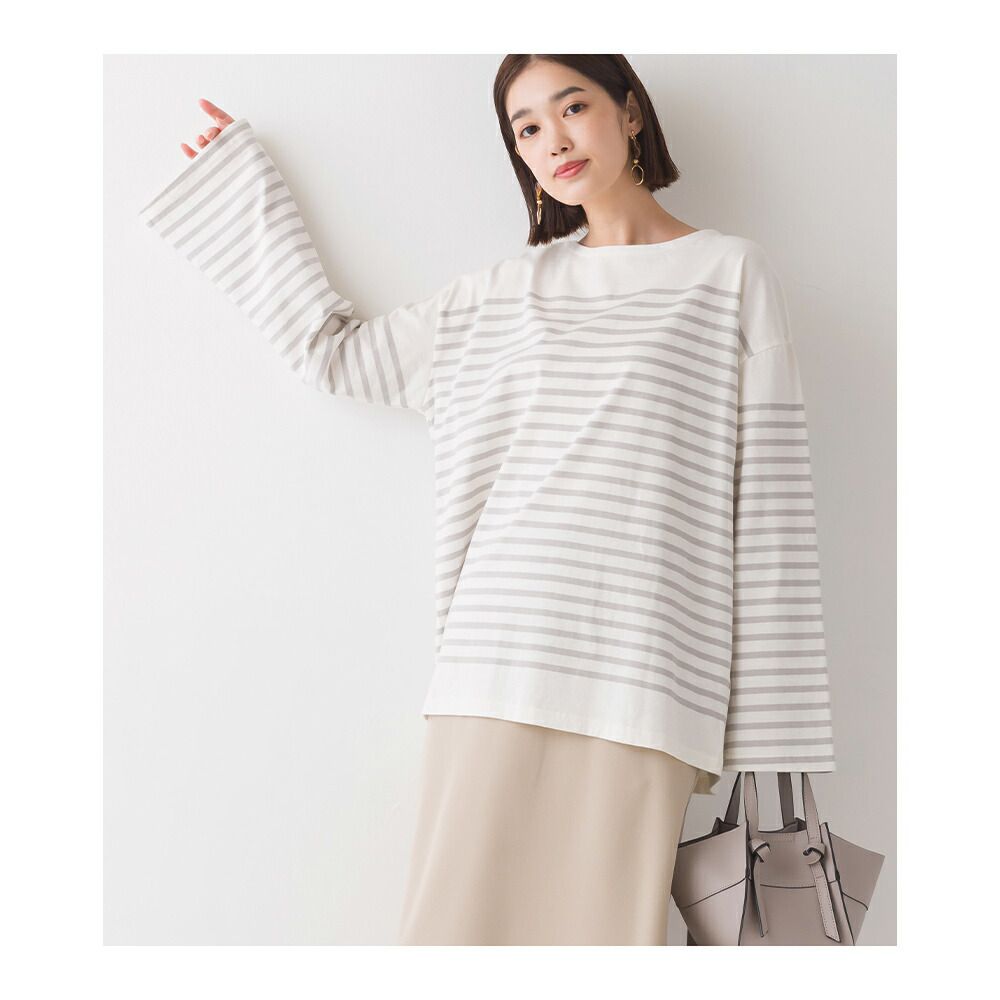百搭純棉條紋寬長袖上衣