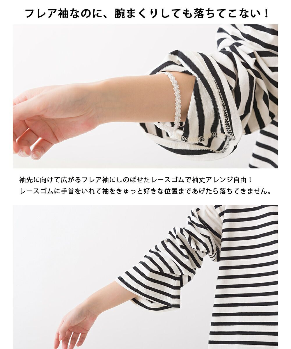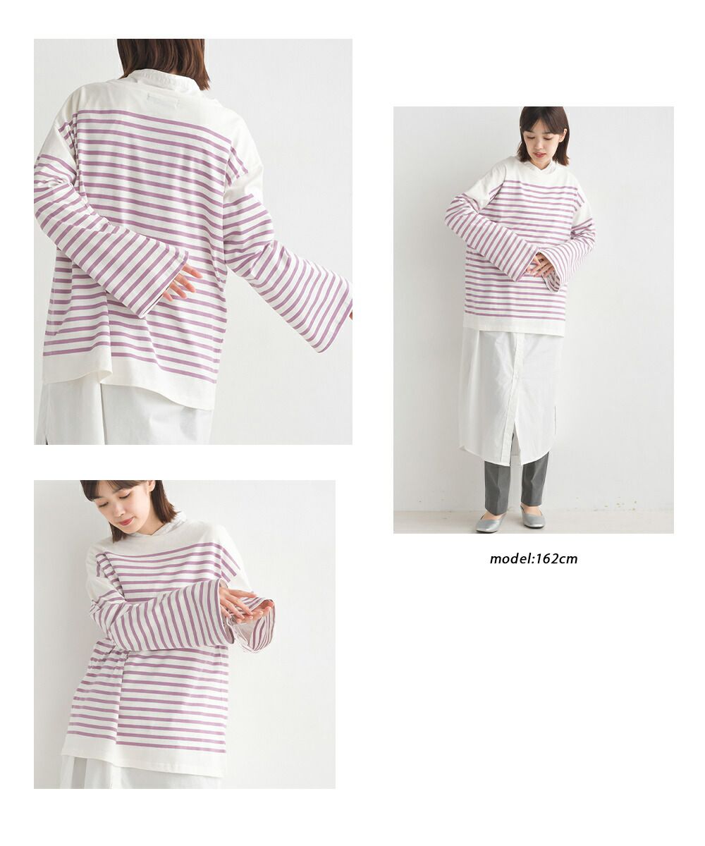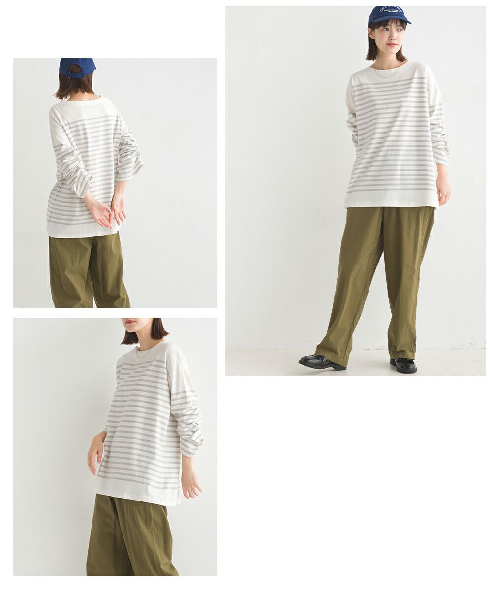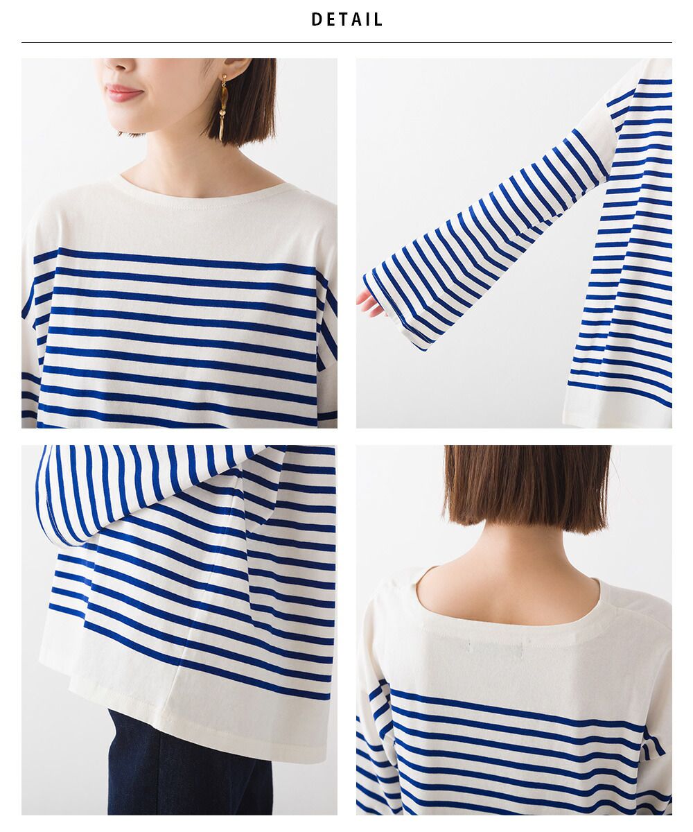百搭純棉條紋寬長袖上衣