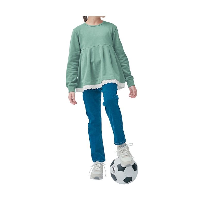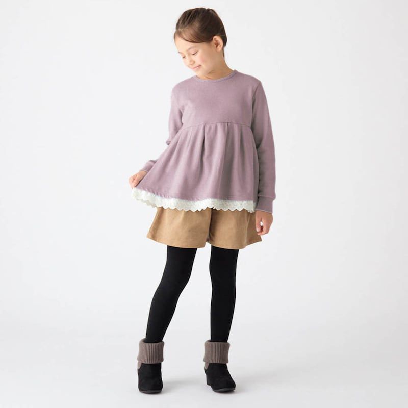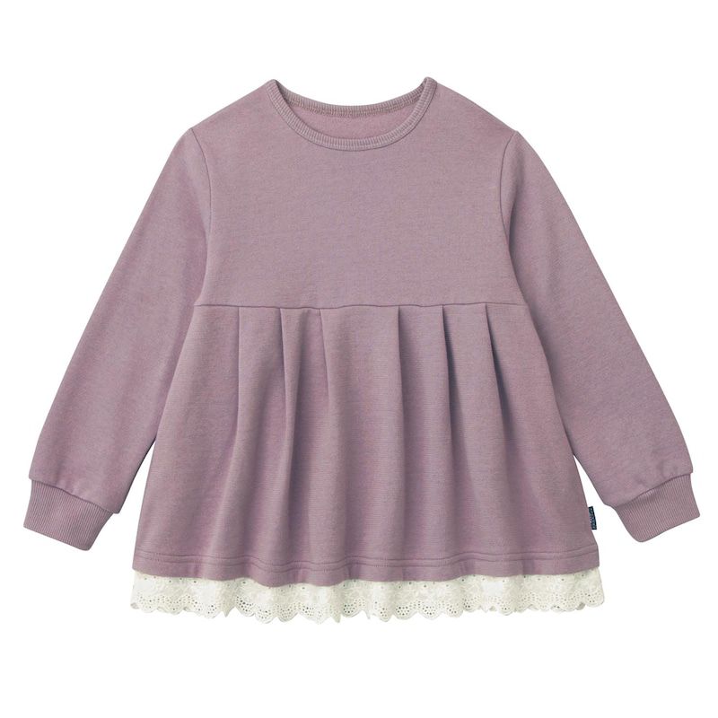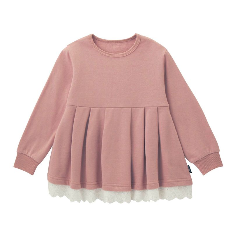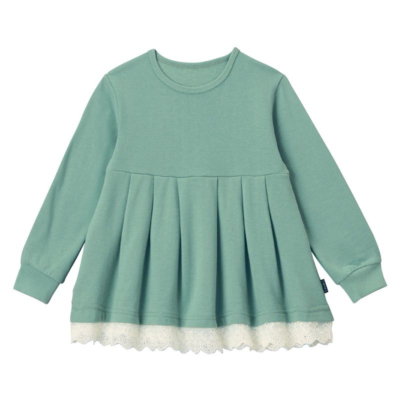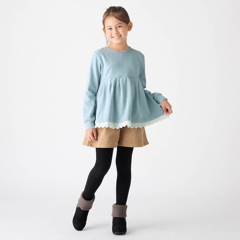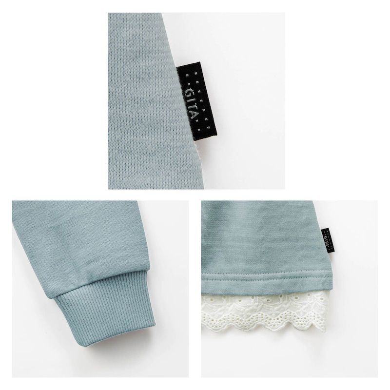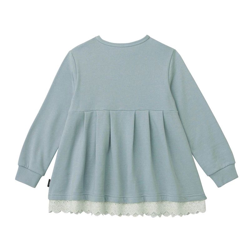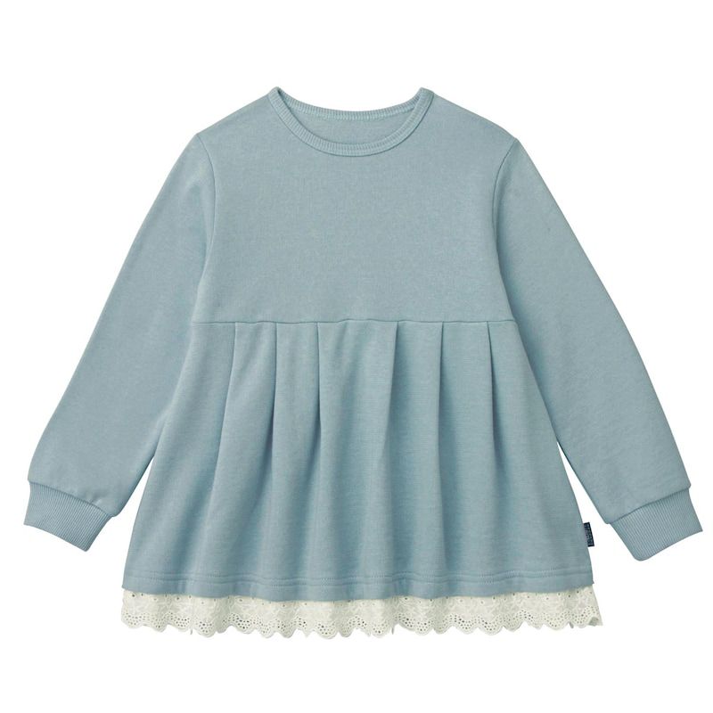 日本千趣會 - 蕾絲拼接刷毛長袖上衣-煙燻藍
