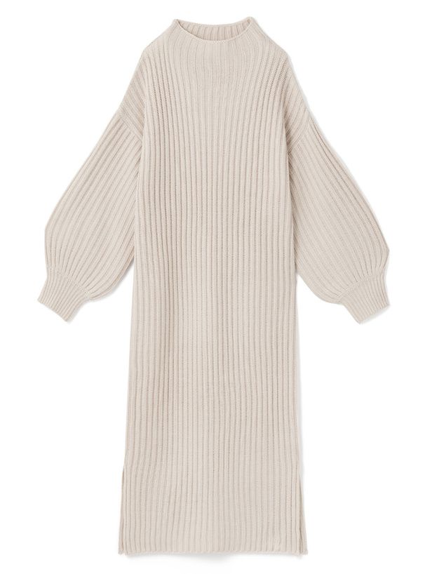 日本 GRL - 顯瘦羅紋氣球袖針織洋裝-奶油杏 (F)
