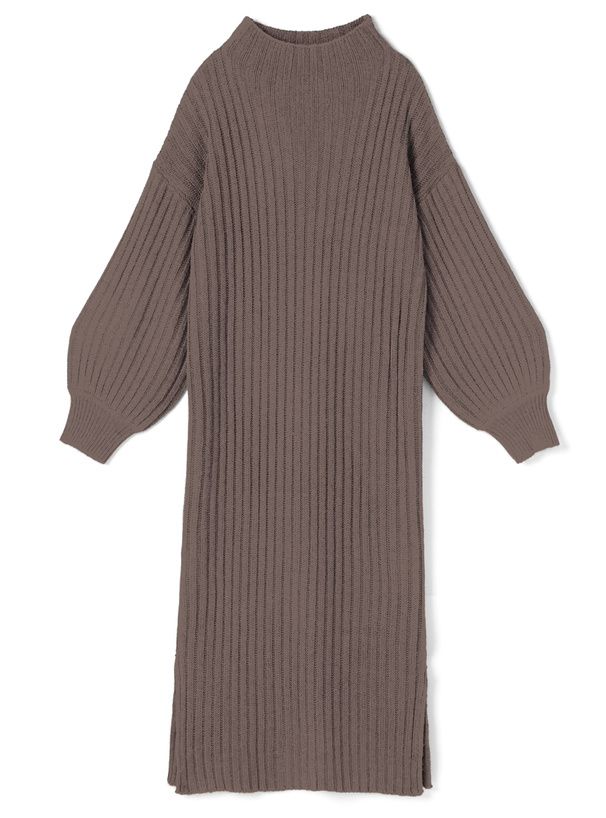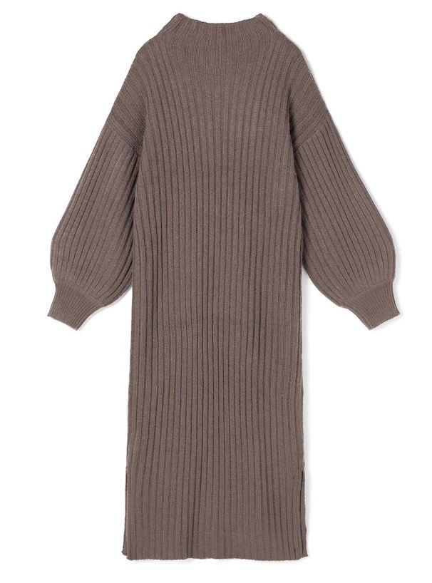 日本 GRL - 顯瘦羅紋氣球袖針織洋裝-灰摩卡 (F)