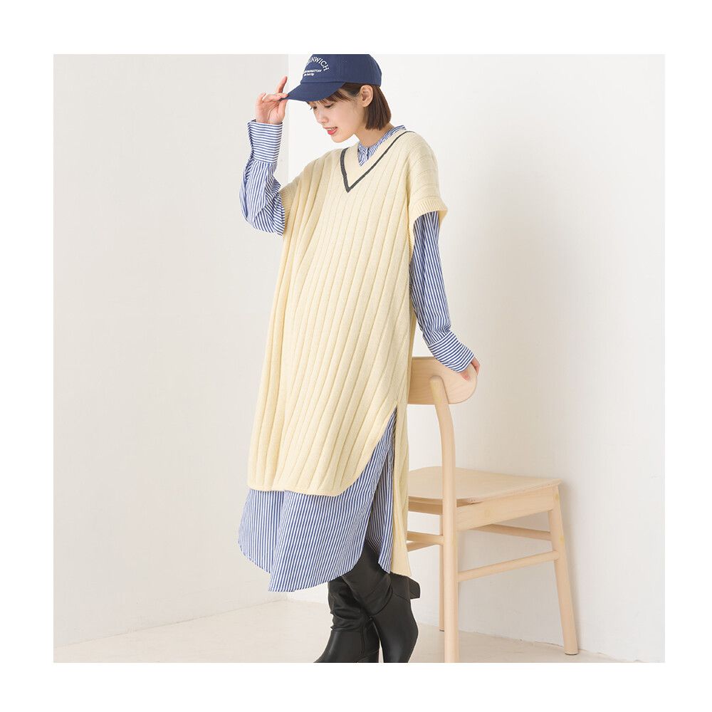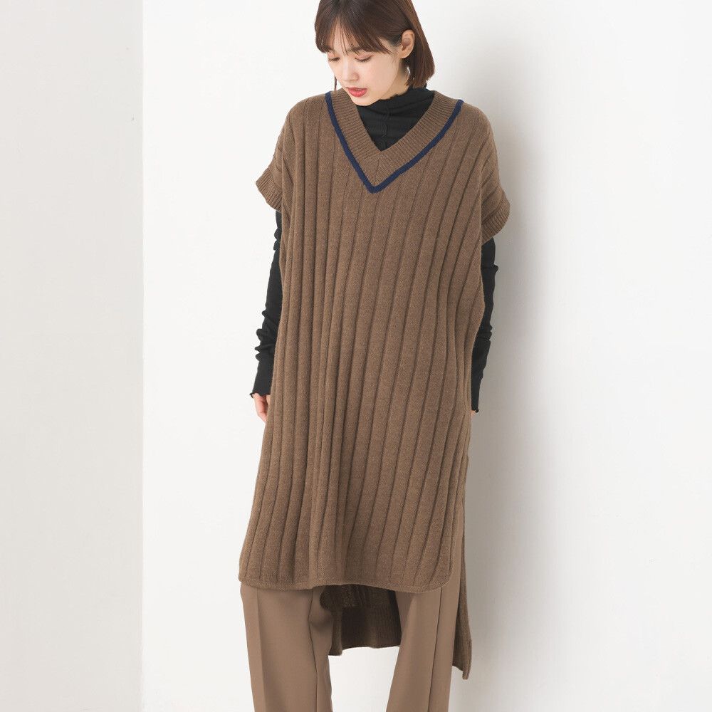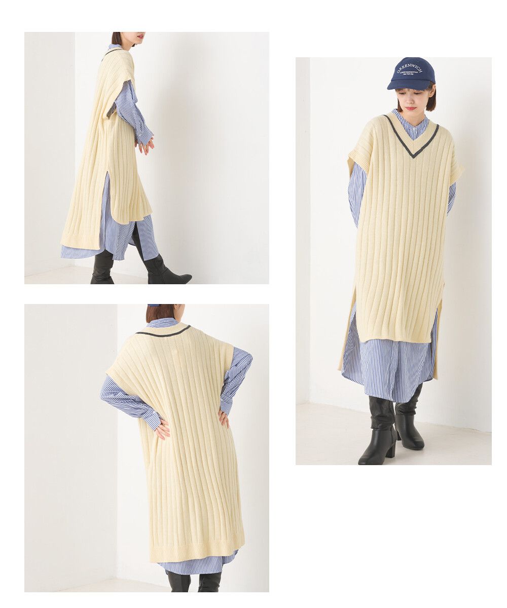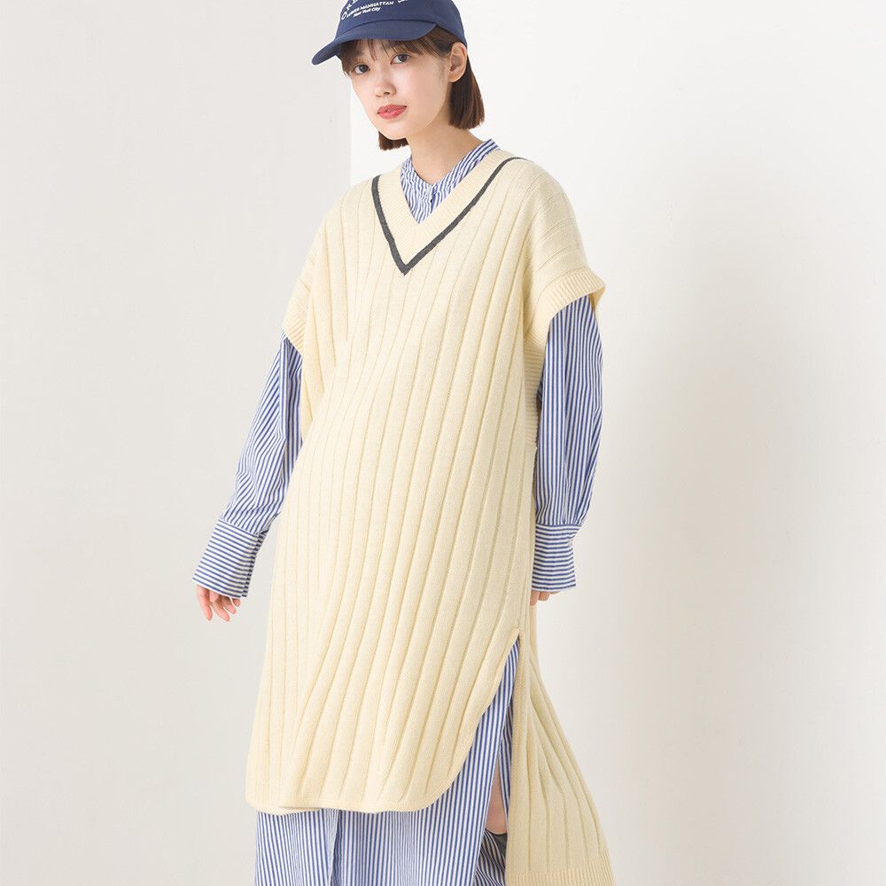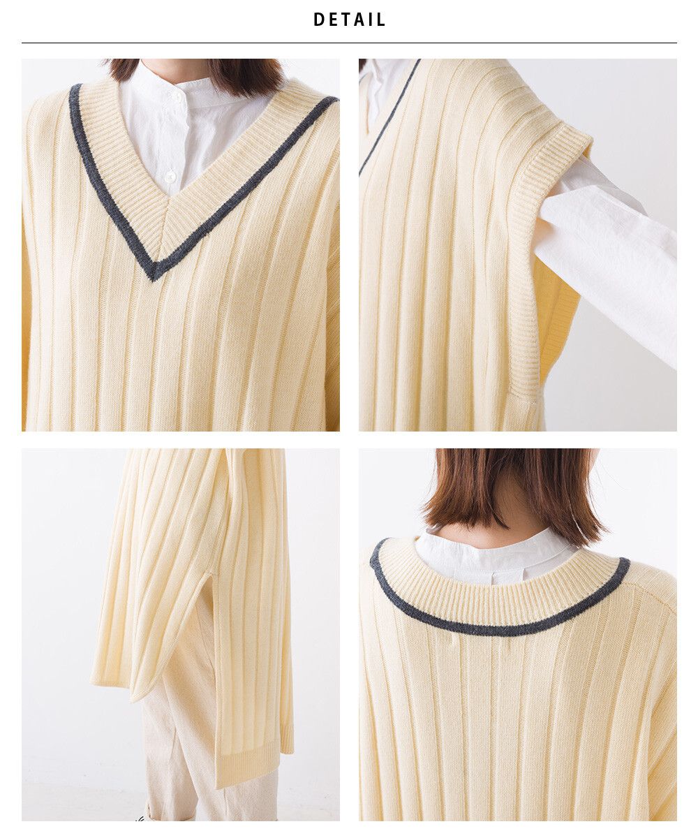 • 品名:羊毛混紡V領學院風修身長版背心