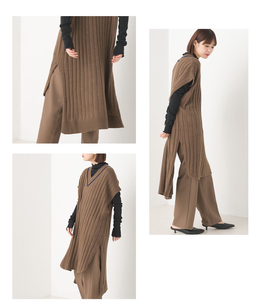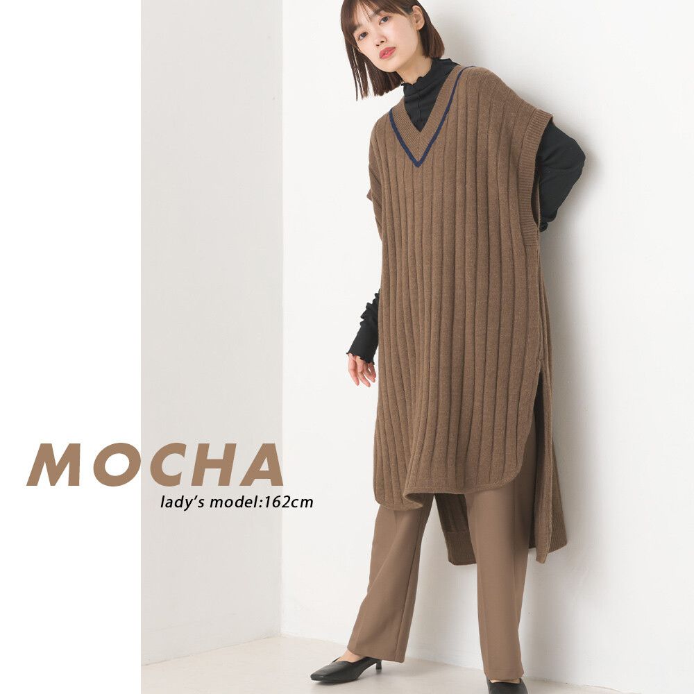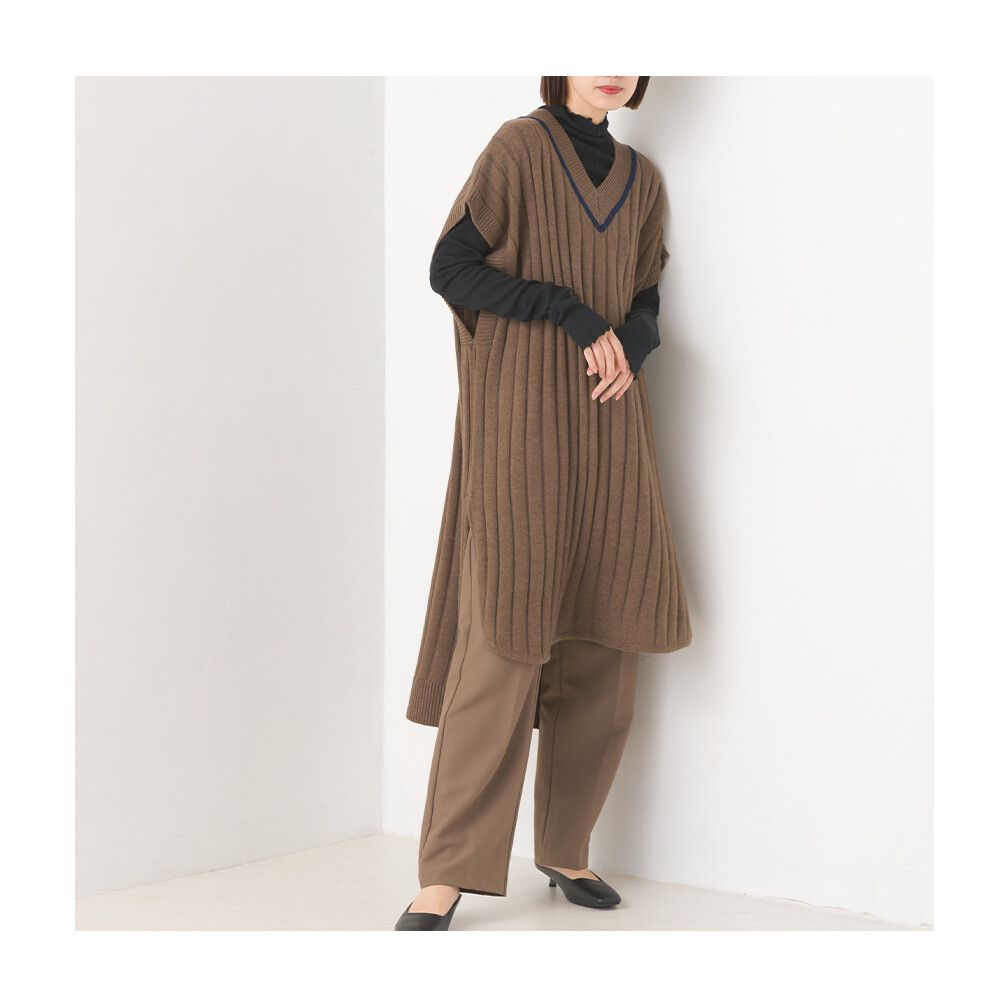日本 OMNES - 羊毛混紡V領學院風修身長版背心-深摩卡