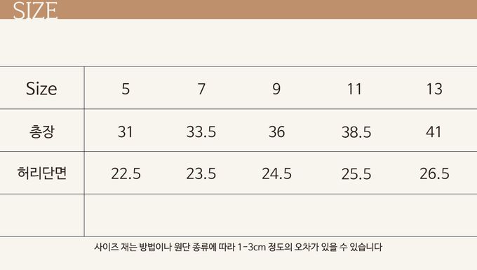 尺寸表由上而下為:總長、腰寬。