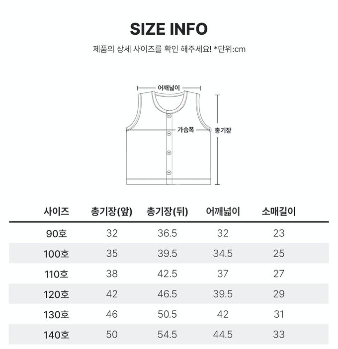 上衣尺寸表由左而右為:尺寸、衣長(前)、衣長(後)、肩寬、袖長
