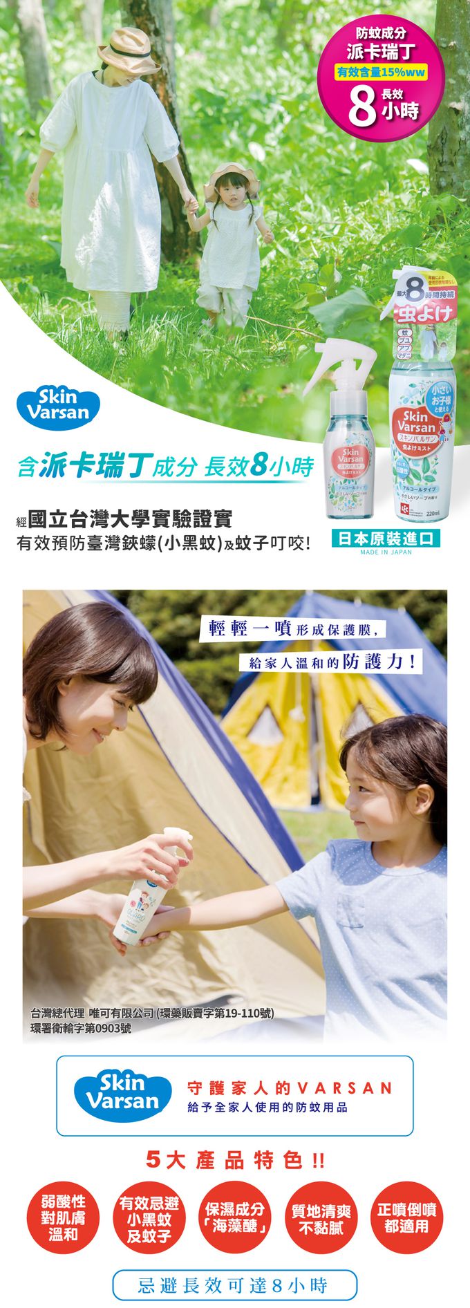 不含敵避DEET,忌避長效可達8小時,含保濕成分配方,散發淡淡清新皂香,清爽不黏膩,