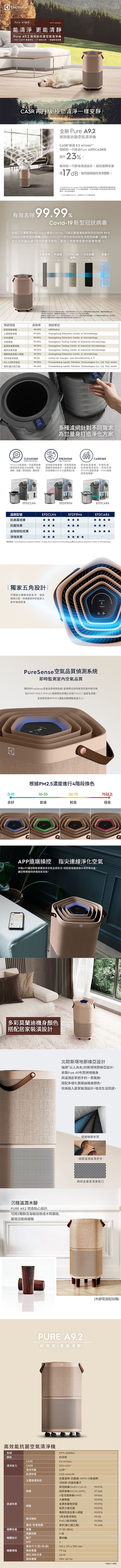 品名:Pure A9.2 高效能抗菌空氣清淨機 (奶茶棕) 適用22坪空間 EP71-56WBA