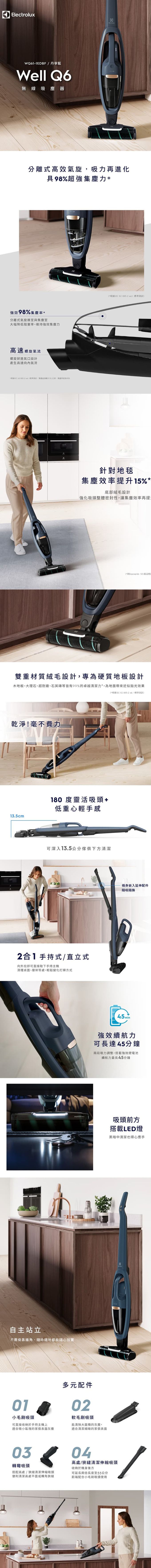商品規格顏色 藍色系產地 中國無線/有線 無線集塵方式 可洗式集塵筒型式 直立式, 手持式容量 0.4L電池電壓/容量:18V HD鋰電池/2100mAh重量 2.65Kg電壓 110V充電時間 4.5小時使用時間(有皆電動吸頭的模式):高速13min./低速45min.保固 2年BSMI認證號碼 R33428
