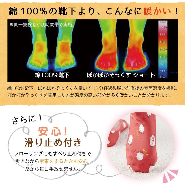 ❤50歲B小姐:「以前都沒有穿室內拖鞋的習慣,但是手腳冰冷的狀況越來越嚴重所以開始找適合當做室內拖鞋的商品。丸和暖暖襪很溫暖,又有防滑,感覺可以用很久」