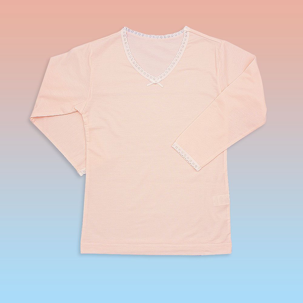 女童天絲EKS溫感發熱紗長袖內衣-素色-粉色 (110-160cm)