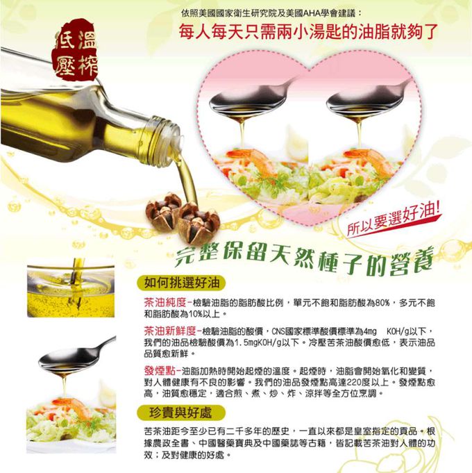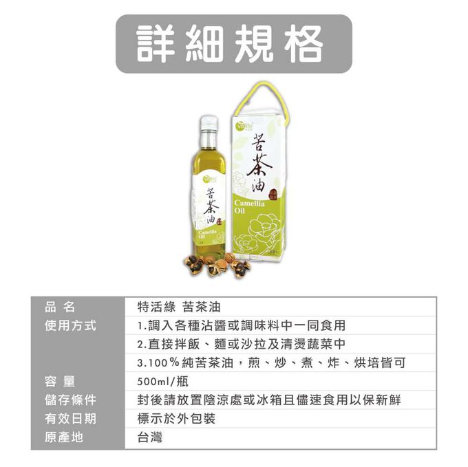 品名:摩達客嚴選-特活綠 冷壓苦茶油 天然茶籽 耐熱高食用油