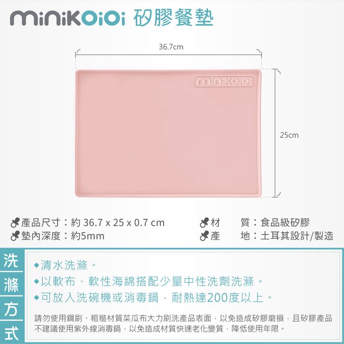 土耳其 minikoioi - 矽膠餐墊-薔薇粉 (約36.7 x 25 x 0.7 cm)