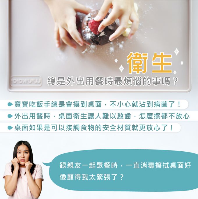 帶出去用餐很方便,直接把食物放上去就好(適合會亂敲碗、不用給碗的寶寶XD)