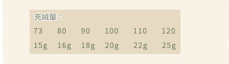 成分:布料:100%聚酯纖維 填充物:90%鴨絨