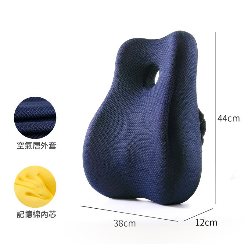 靠墊是按扣設計,方便依據椅背厚度調整(下圖示意為涼感透氣護腰記憶棉靠墊,細節提供參考)