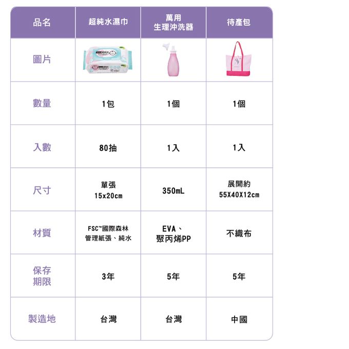 一次可以備齊待產用品,很方便!目前已經生產完,這些用品都很好用!
