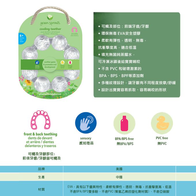 🌺 Green Sprouts 為美國知名嬰幼兒品牌,符合美國/歐洲各項食品/用品安全機構嚴格標準測試,努力致力於提供嬰幼兒安全、健康、高品質用品