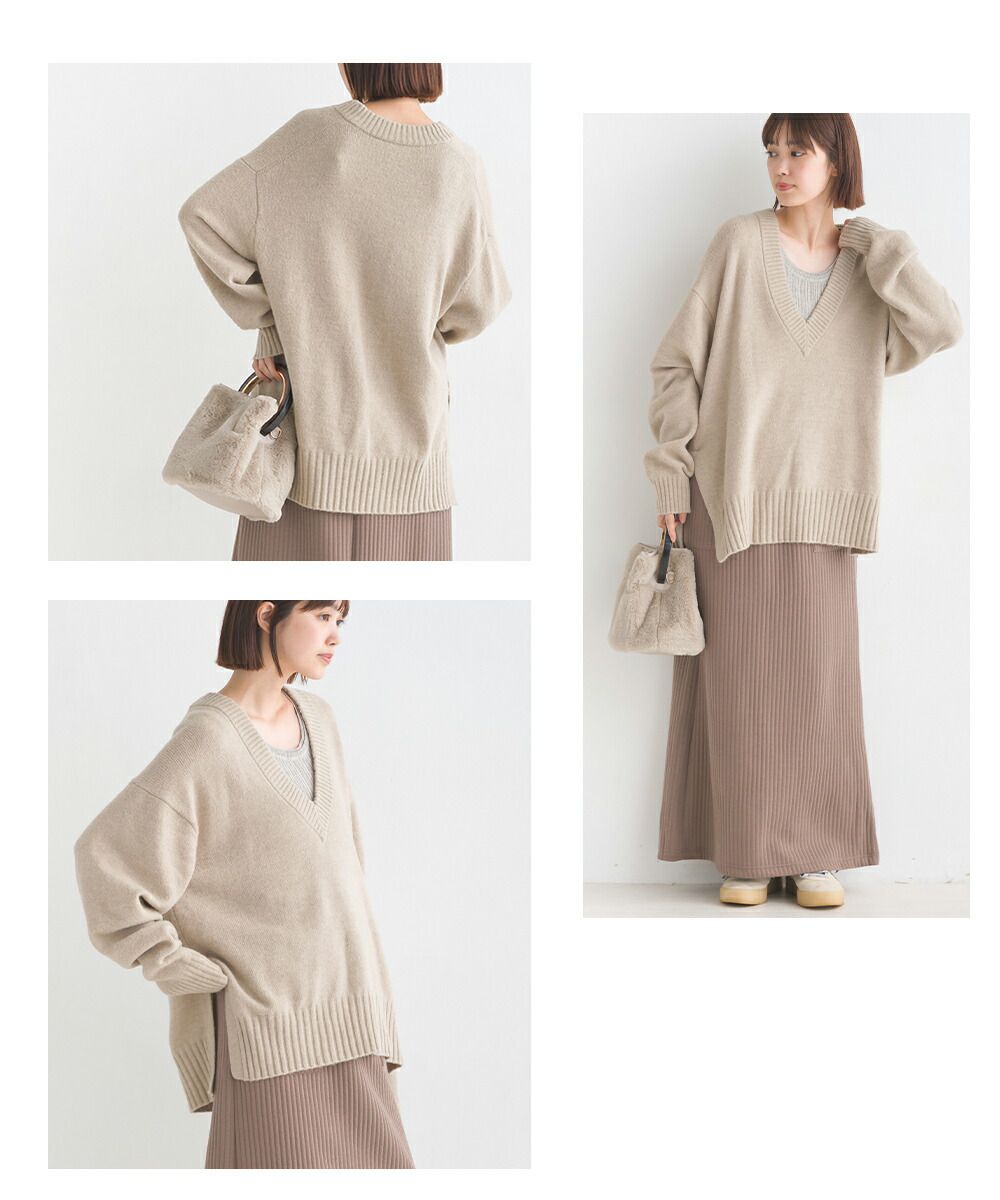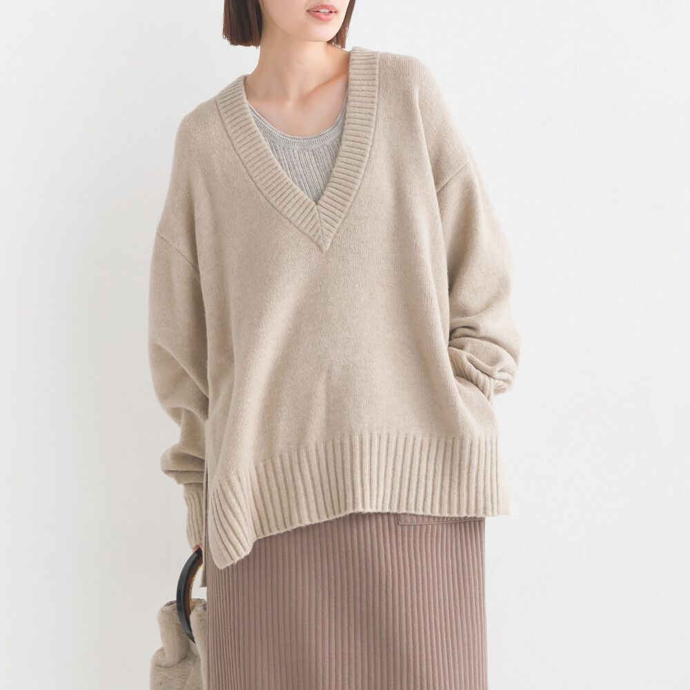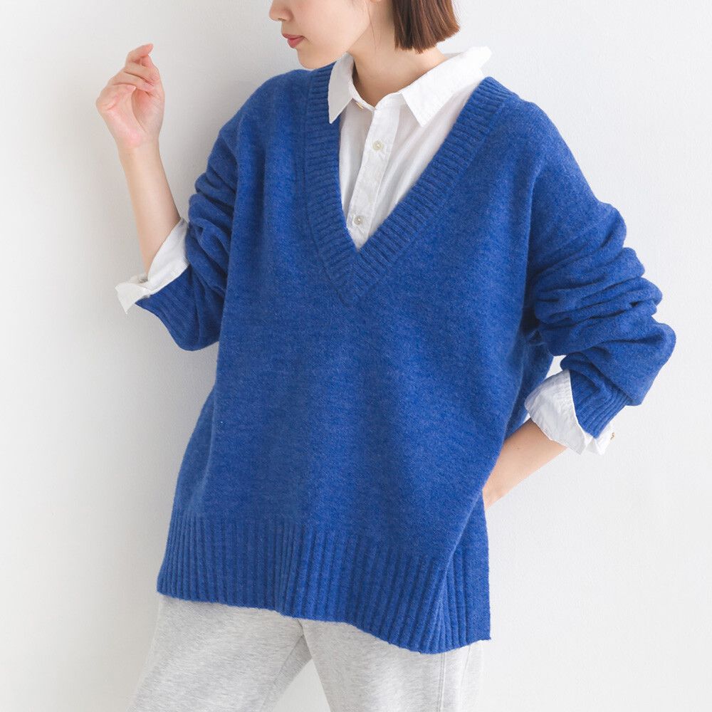 舒膚優雅混羊毛深V針織毛衣