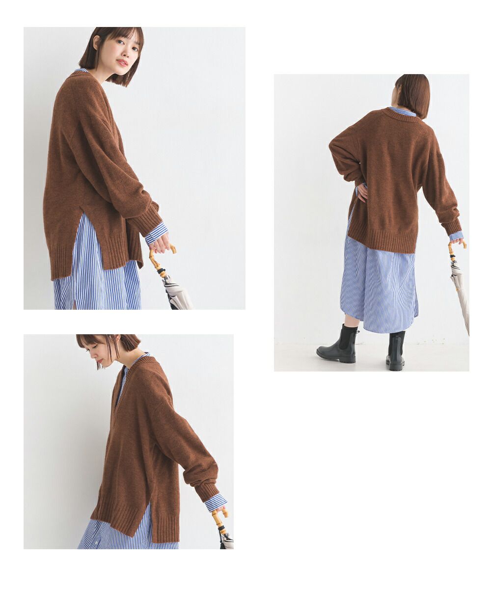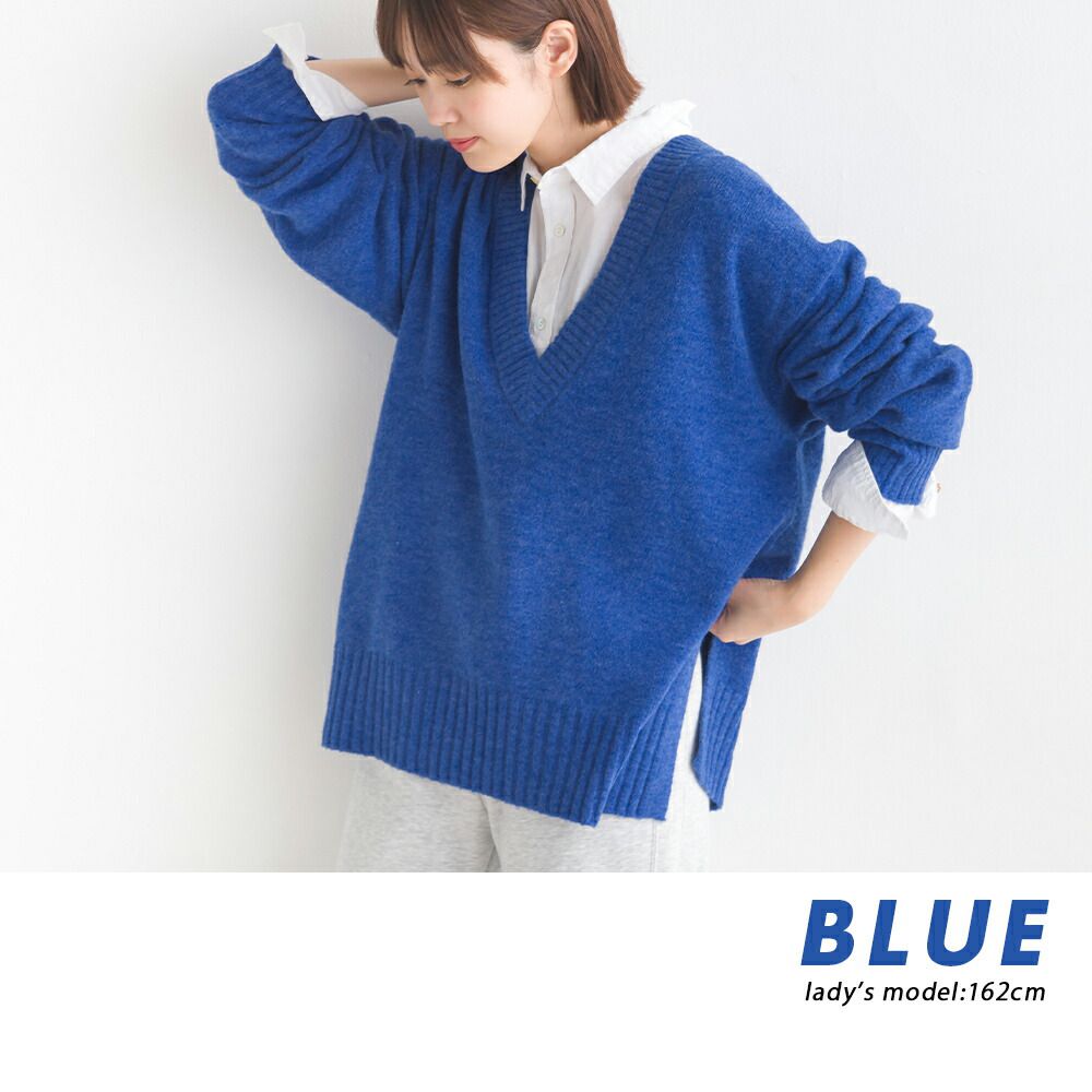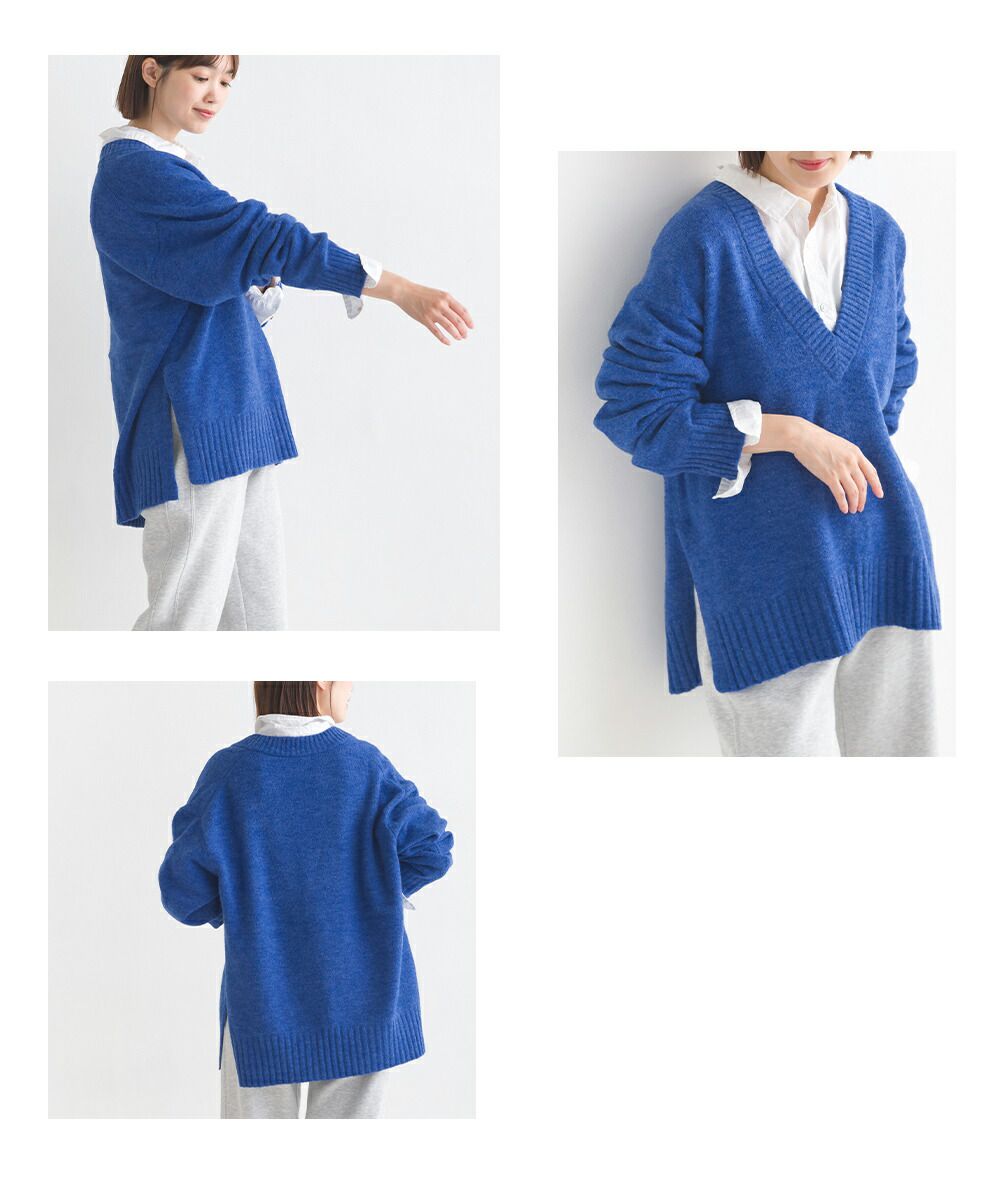 舒膚優雅混羊毛深V針織毛衣