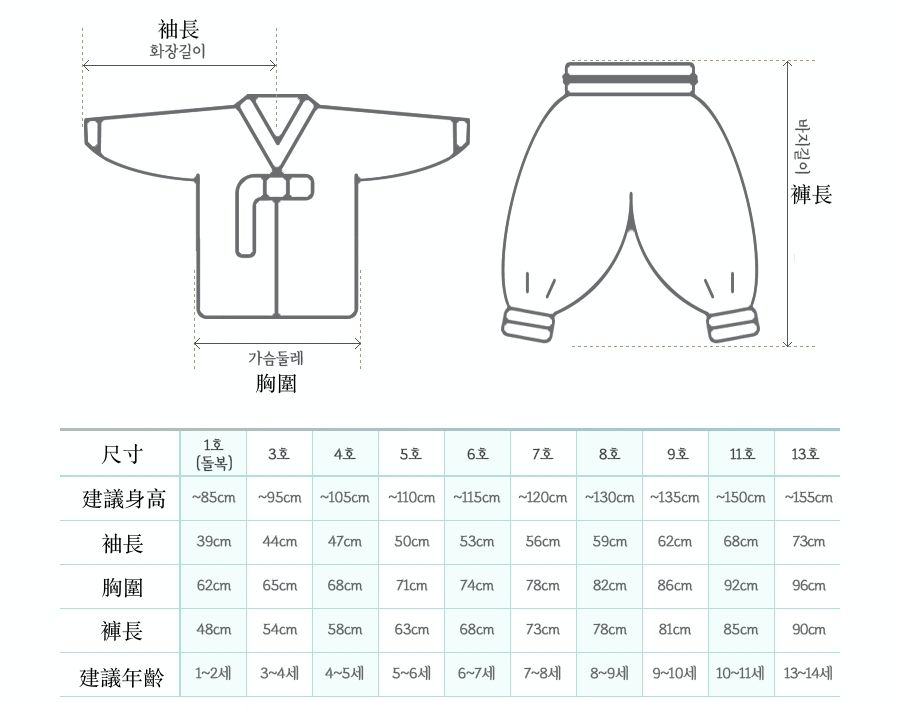 • 尺寸表上所標示的年齡均為虛歲,僅供參考。請以實際測量尺寸為準。