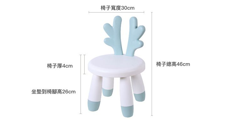 童趣兒童加厚塑膠矮凳(組裝款)-麋鹿角-藍色 (30x26x46cm)