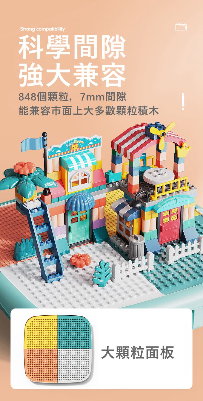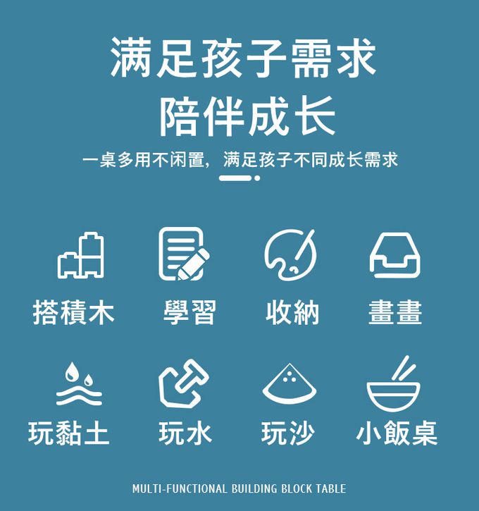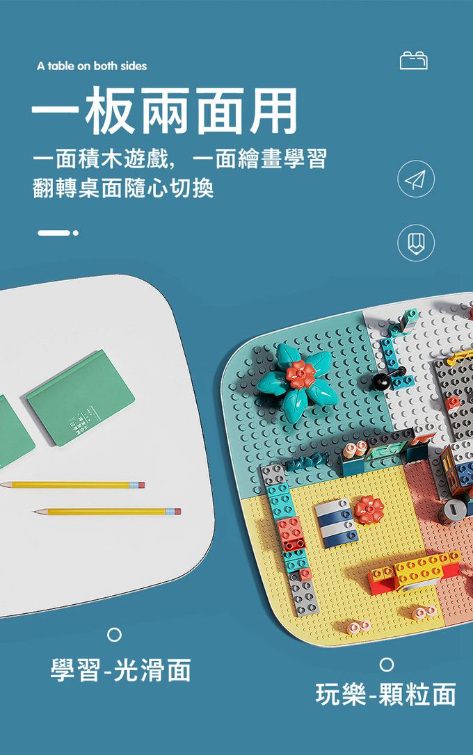 • 品名:多功能積木桌-可一段升降(與樂高 得寶皆相容)