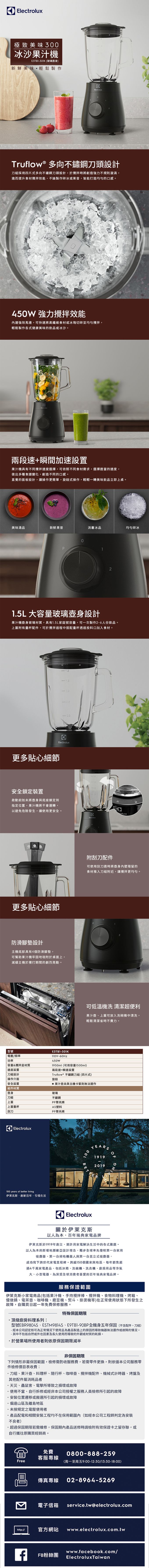 品名:450瓦 極致美味300 冰沙果汁機 玻璃杯身 E3TB1-301K