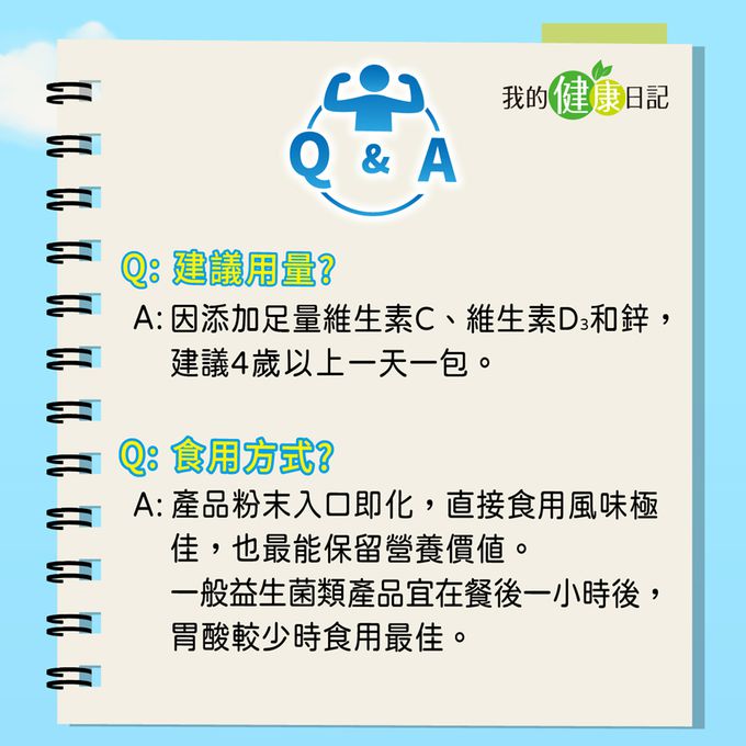葡萄糖酸鋅、維生素C、二氧化矽、蔗糖素(甜味劑)、香料(含香料、丙二醇、酒精、水)、維生素D3〔辛烯基丁二酸鈉澱粉、蔗糖、L-抗壞血酸鈉(抗氧化劑)、中鏈三酸甘油酯、二氧化矽、生育醇(維生素E)(抗氧化劑)、維生素D3〕、胺基乙酸、DL-蘋果酸、香料(丙二醇、香料)。