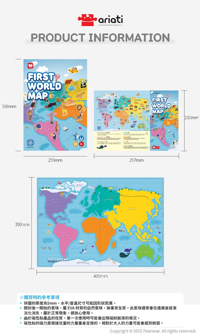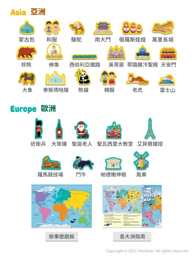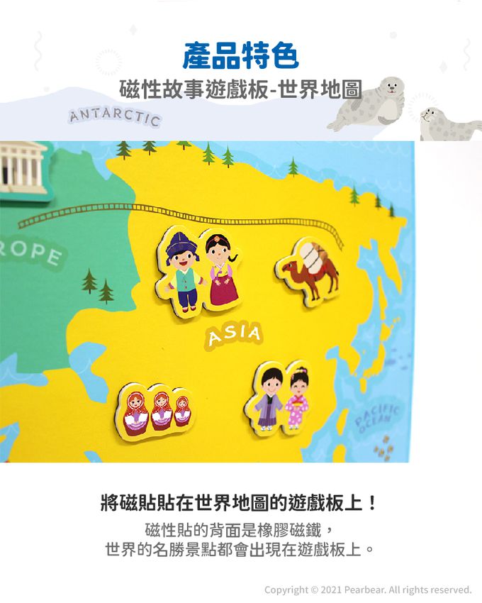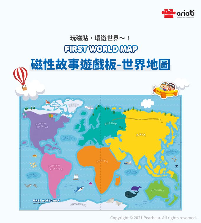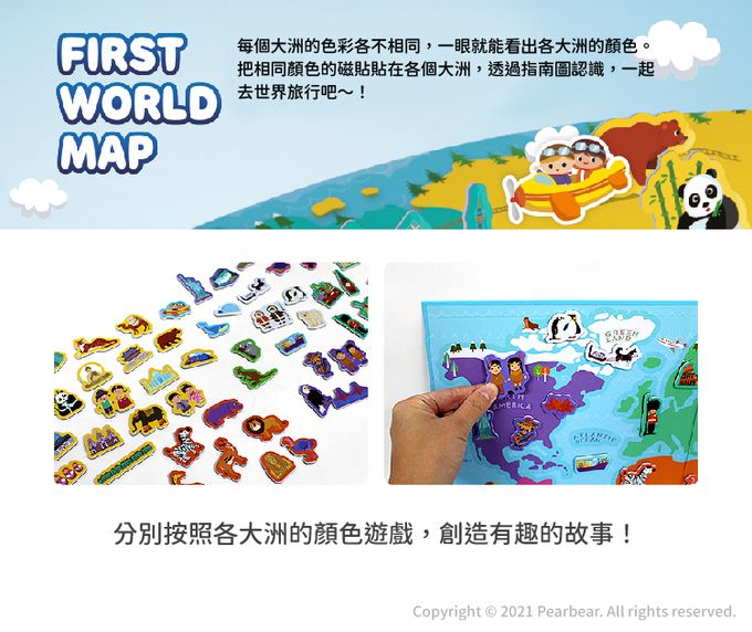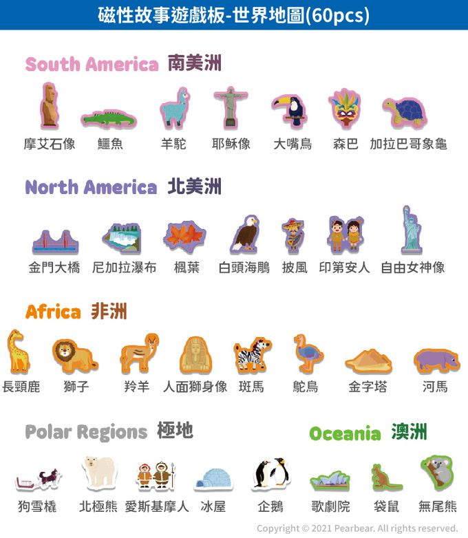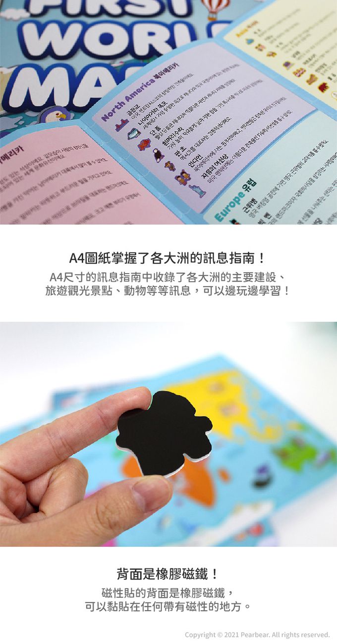七大洲色彩各不同,搭配磁性貼學習地理位置