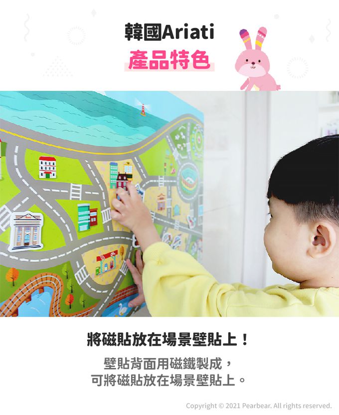 在場景背板上貼和摘下磁性貼,培養小手運動
