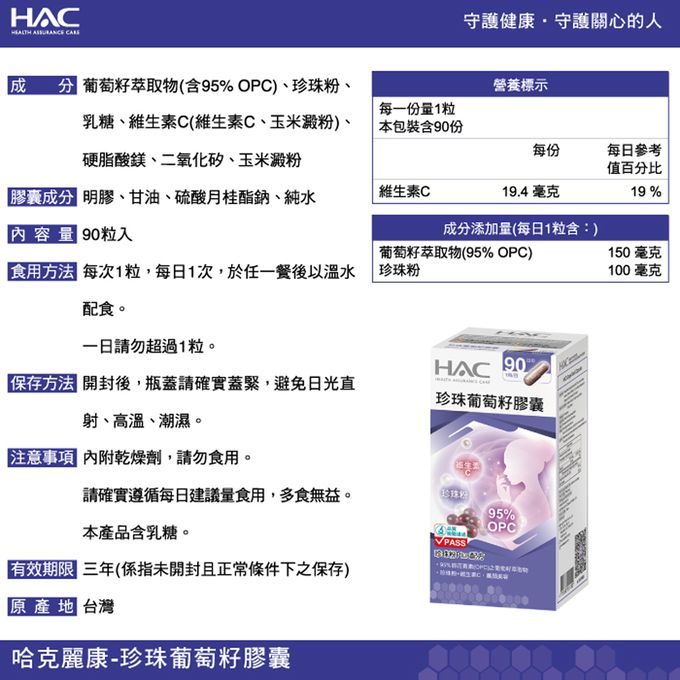品名:【永信HAC】珍珠葡萄籽膠囊(90粒/瓶)