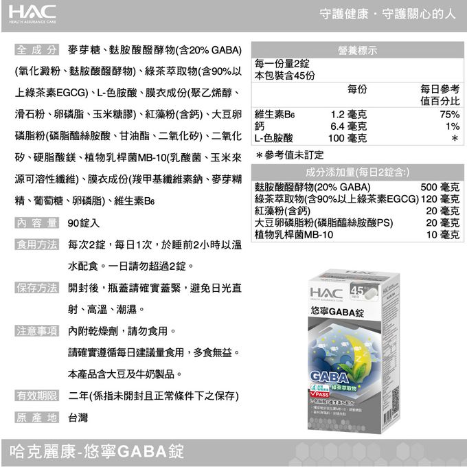 透過醱酵科技萃取出γ-胺基丁酸(GABA) ,每日2錠含100毫克