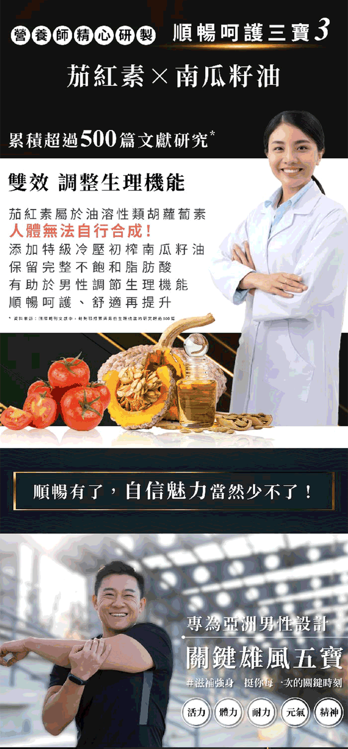新升級添加:「精胺酸」、增量50%「鋅」:提升男性魅力與保養。