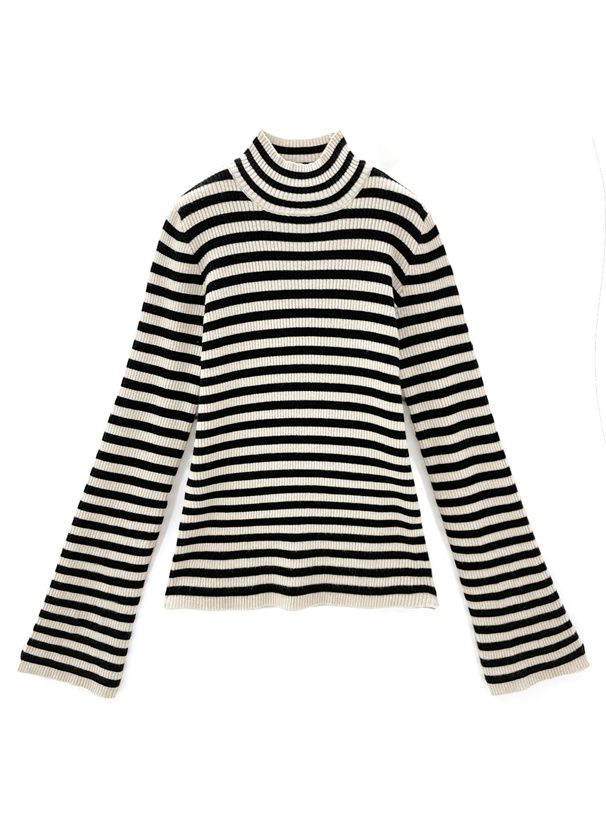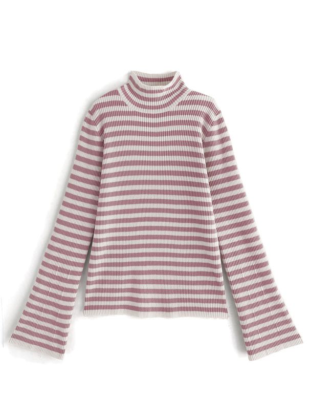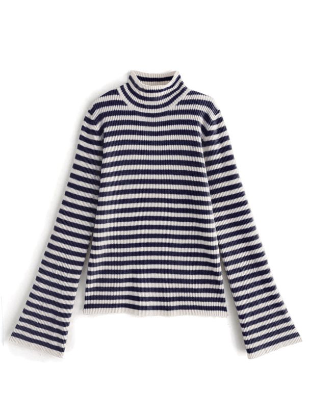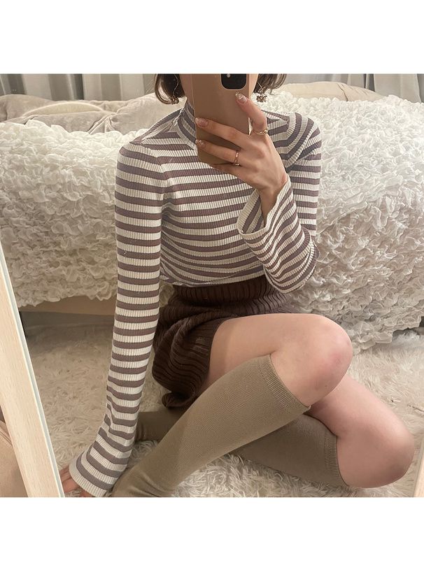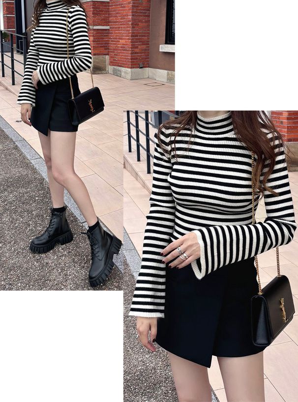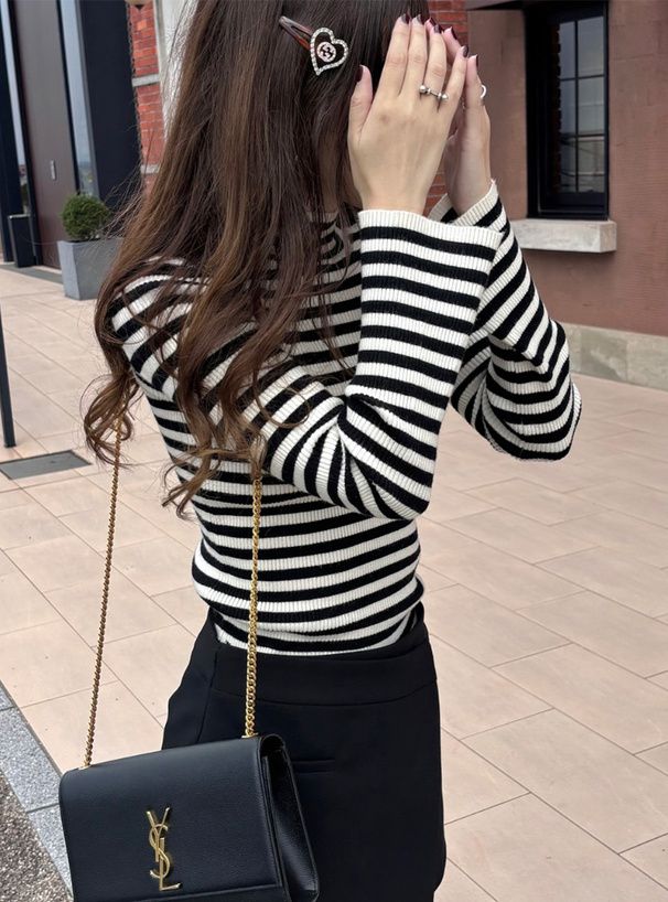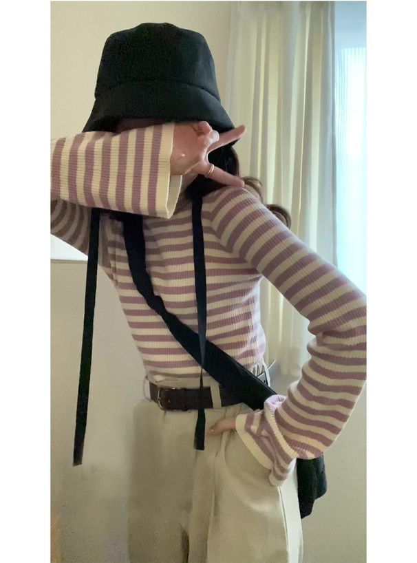 橫條紋彈性針織上衣